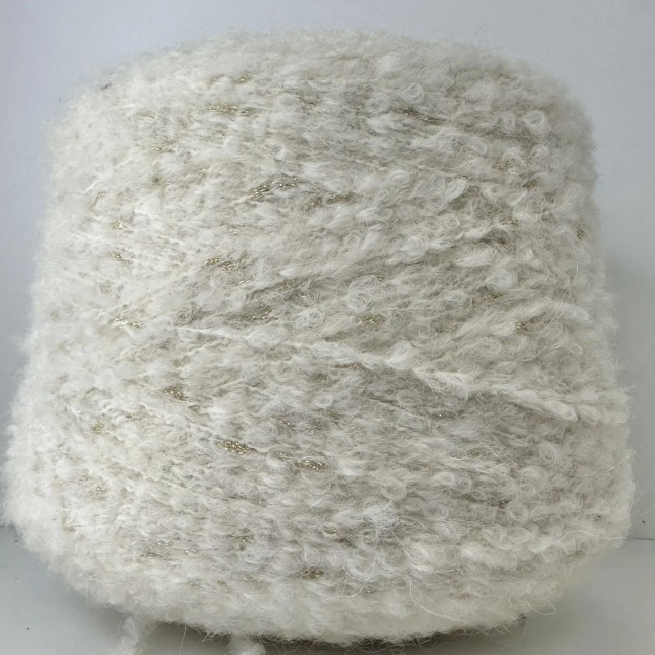 ADONE - Torcitura di Domaso; 25% меринос, 40% альпака, 30% п/а, 5% люрекс; букле с золотистыми почками; 180м/100гр; col.106, цвет: молочный;