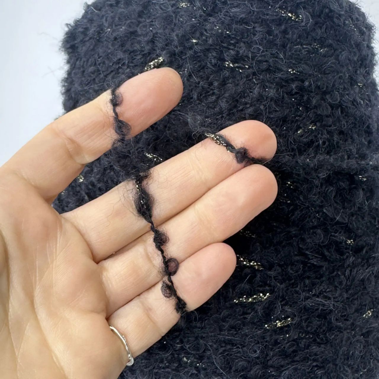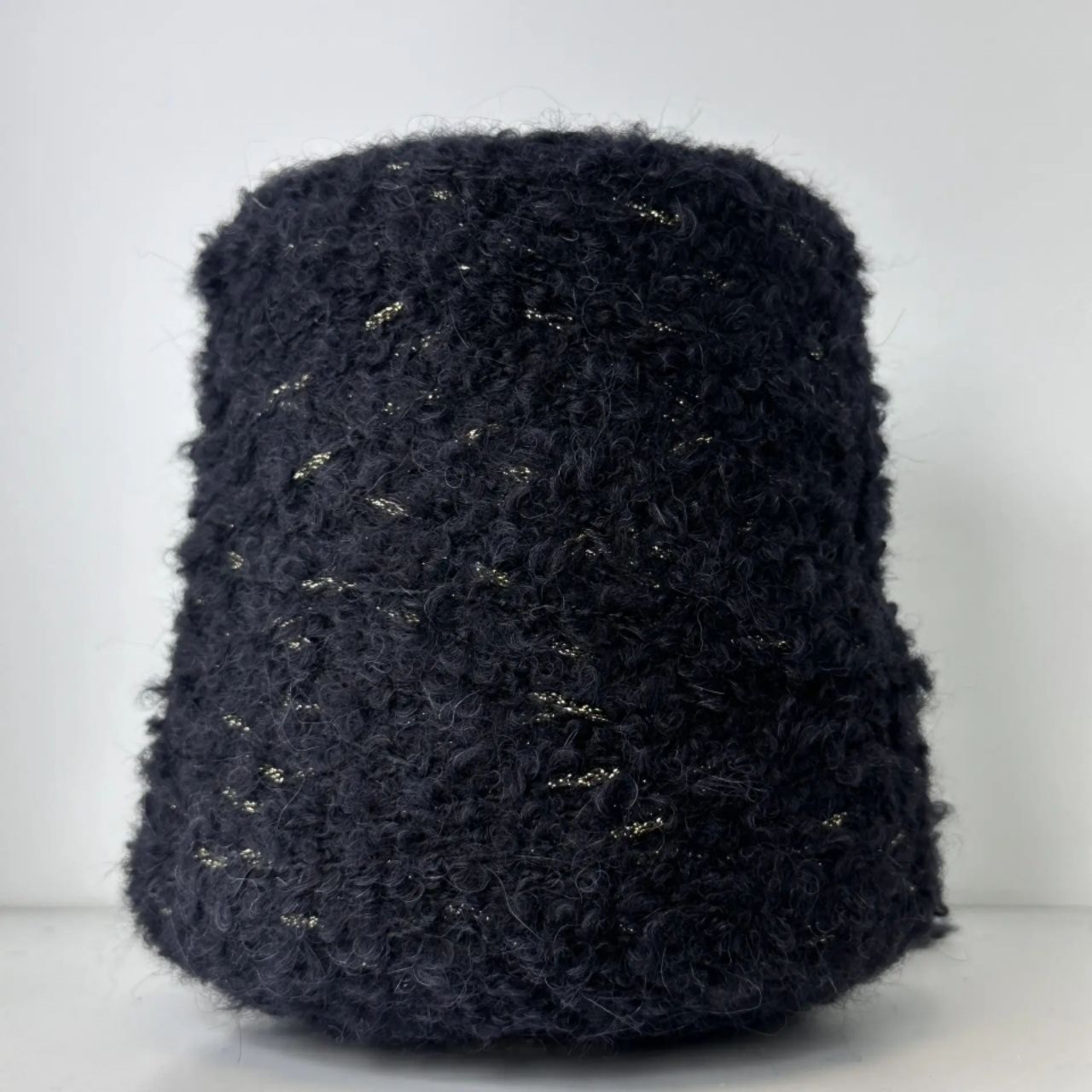 ADONE - Torcitura di Domaso; 25% меринос, 40% альпака, 30% п/а, 5% люрекс; букле с золотистыми почками; 180м/100гр; col.120, цвет: черный с золотом;