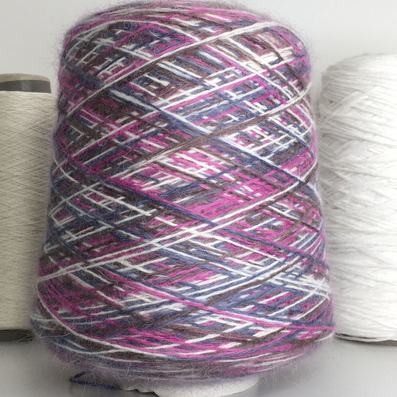 ANGORA70 - Luxury Selection by RiGo; 70% ангора, 10% шерсть, 20% п/а; 560м/100гр; col. 4551. Образец связан в одну нить на спицах №3, малиновый - в две нити на спицах №3,5/4