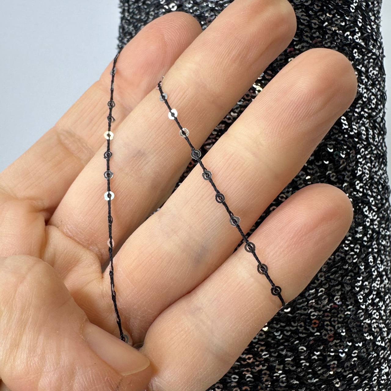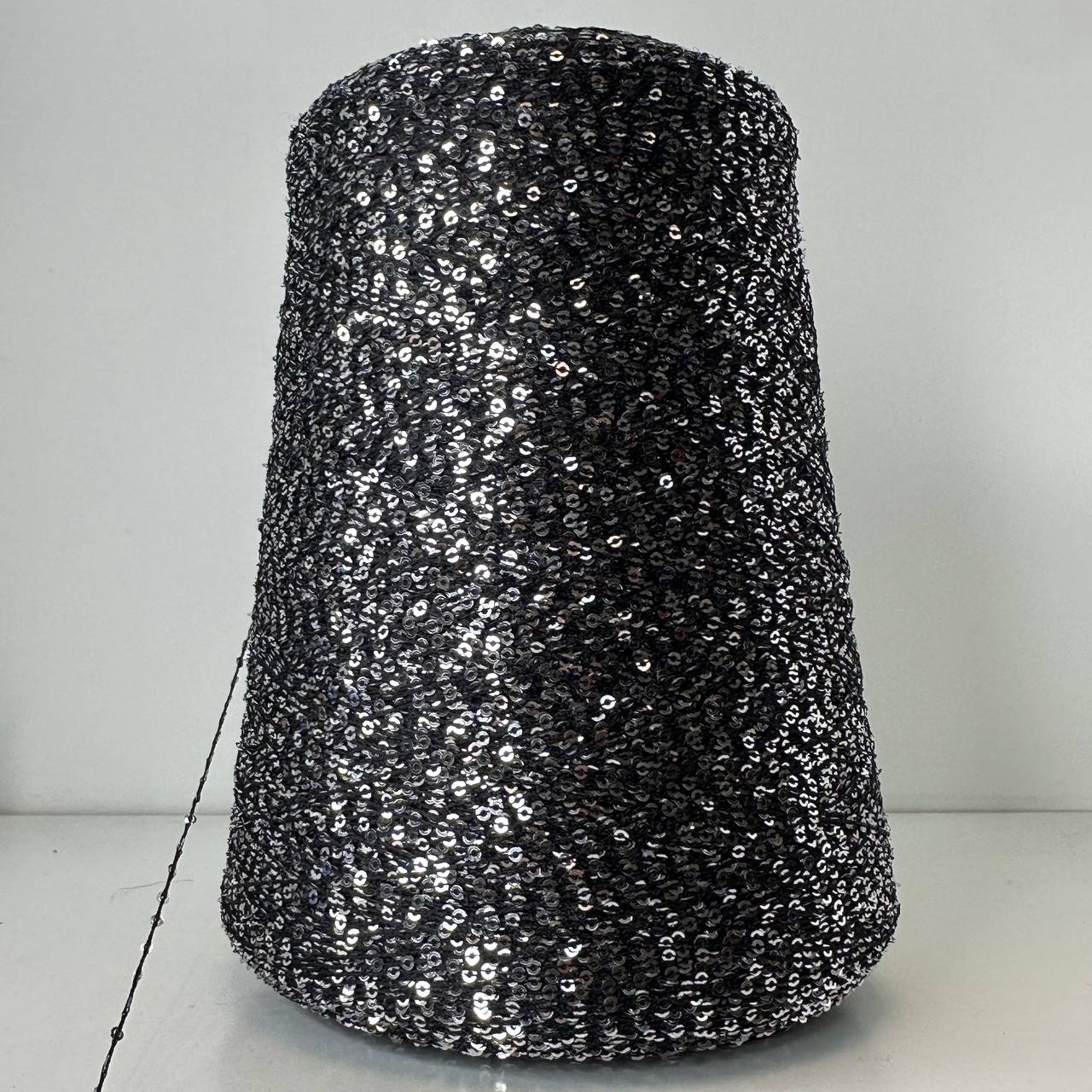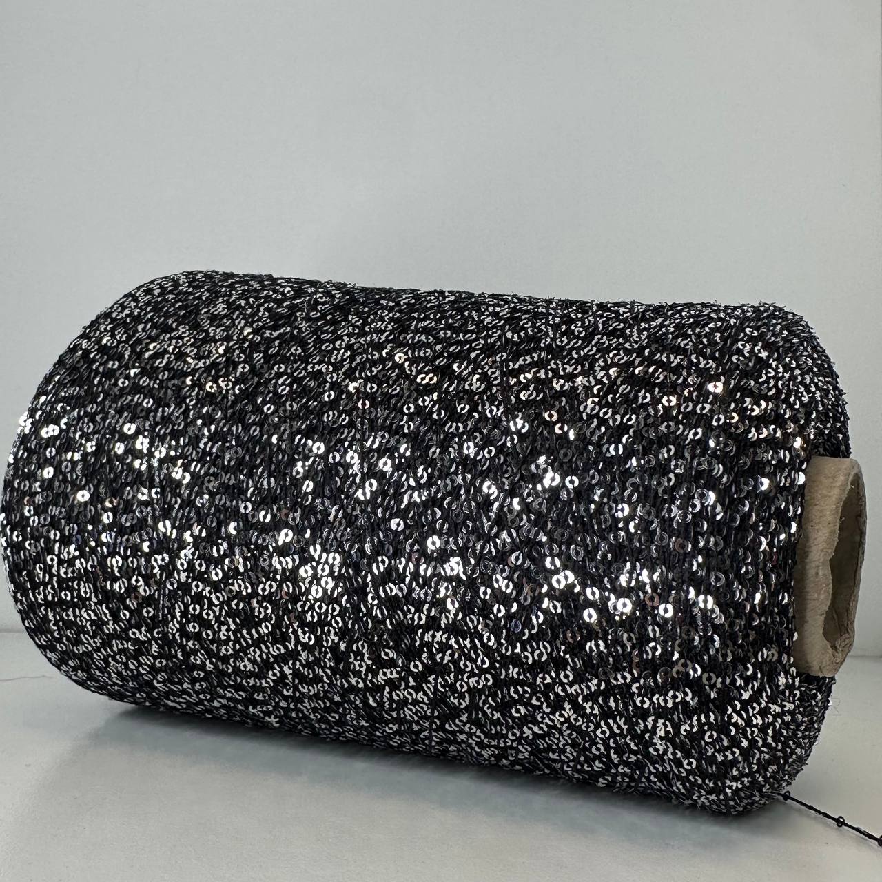 ANTARES - Cofil; п/а, пайетки; 450м/100гр; цвет: нить черная, пайетки серебро; пайетки очень частые, через 5мм