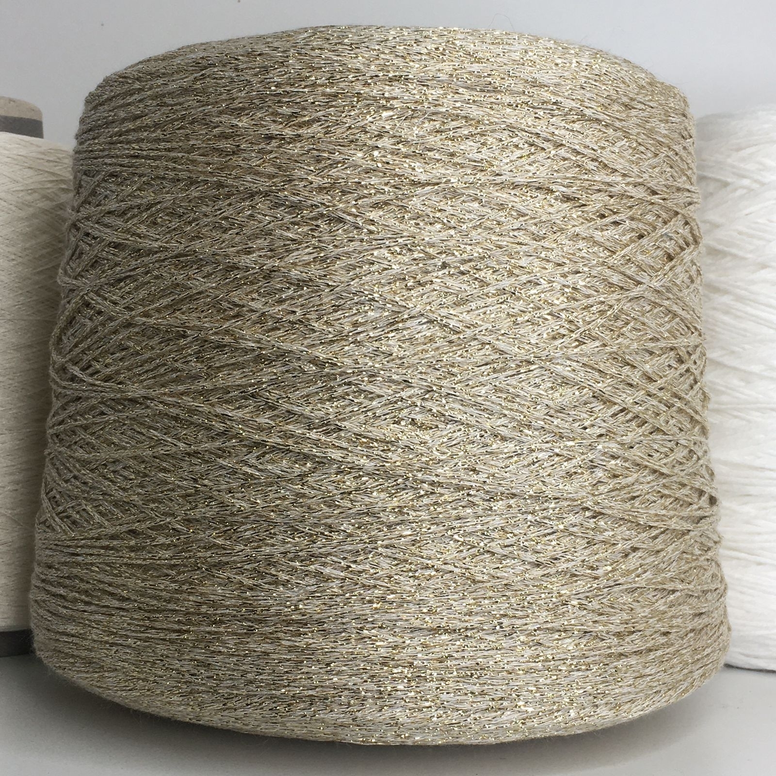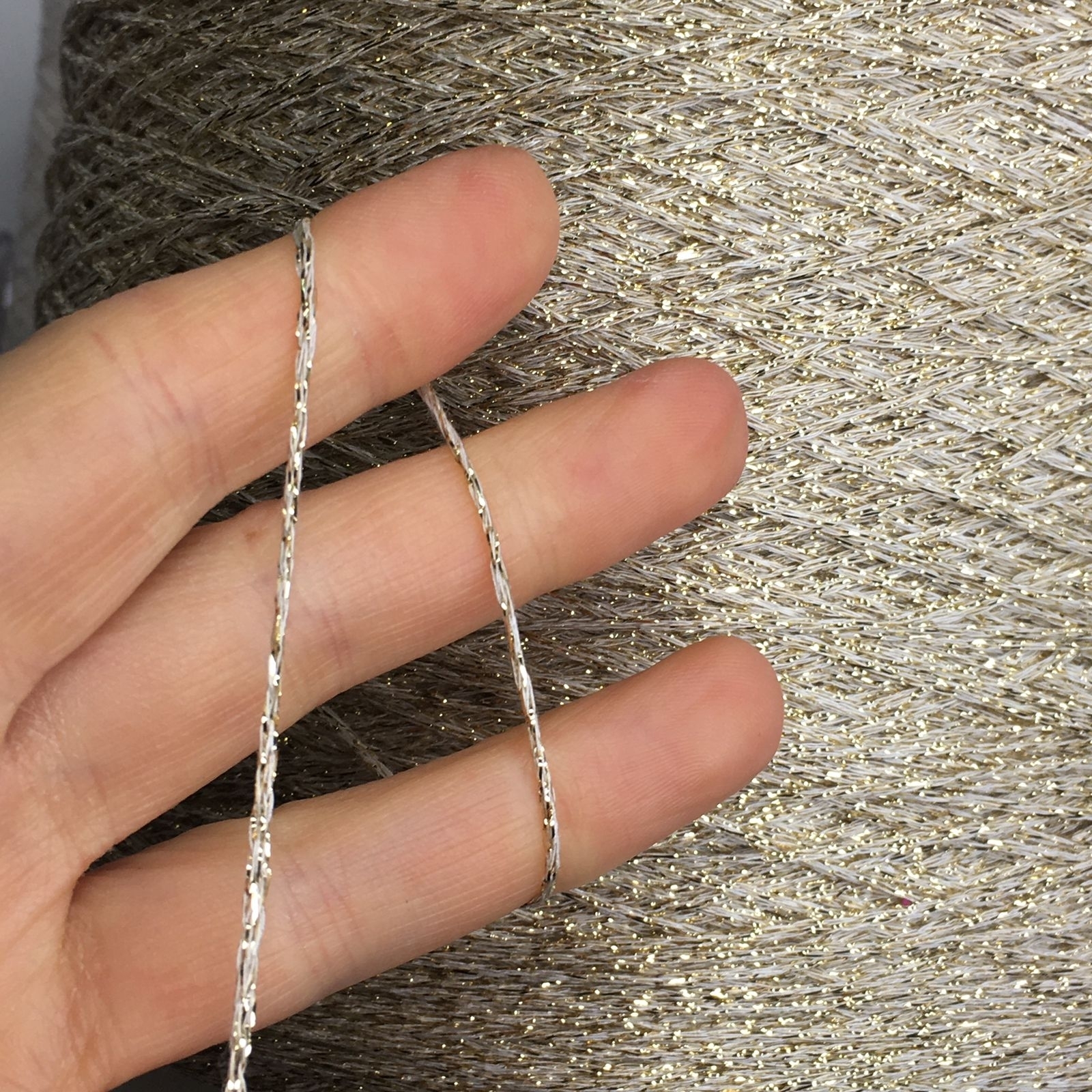BARTOK - Torcitura di Domaso; 80% вискоза, 20%люрекс; Шнурок; 340м/100гр; col. BK62 Белый в золотом люрексе