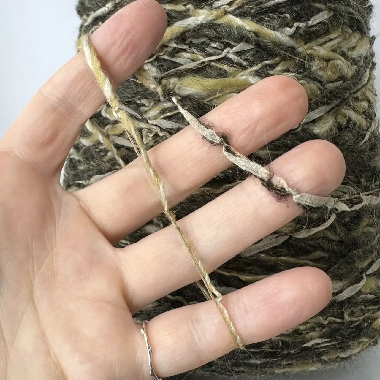 BIZARRE - Industria Italiano Filati; 48% вискоза, 52% п/а; нить фактурная с утолщениями; 170м/100гр; col. 1736, цвет: хаки