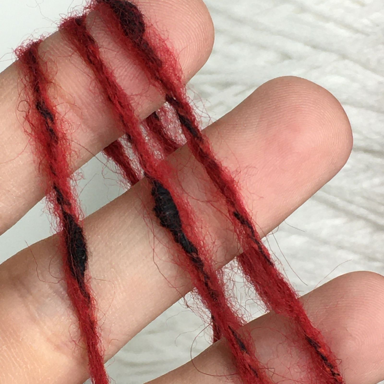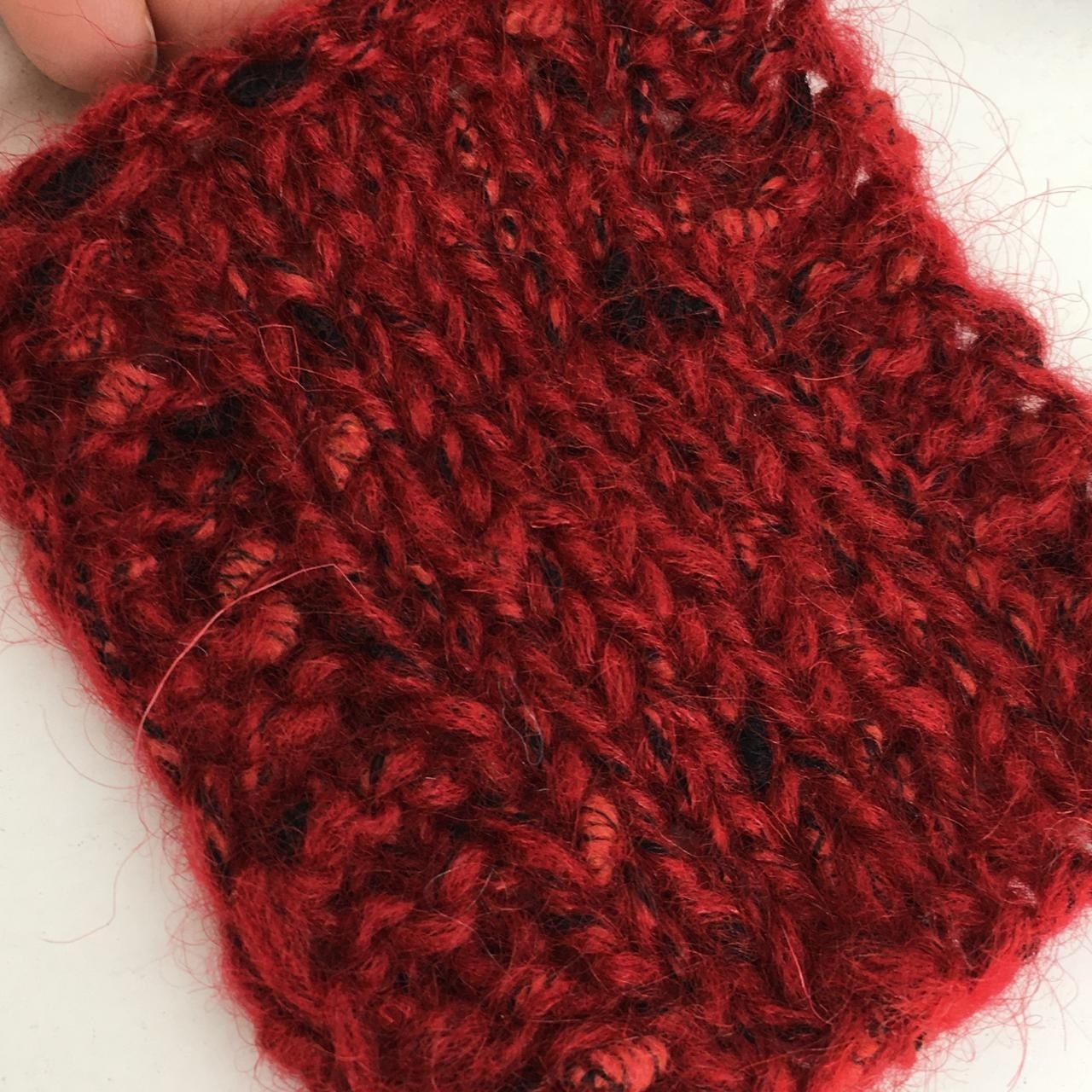 COCO' - Fashion Mill, 38% шерсть, 30% п/а, 14% мохер, 18% п/э; 200м/100гр; col. 64631; фактурная нить с утолщениями. Образец связан в одну нить на спицах №4,5