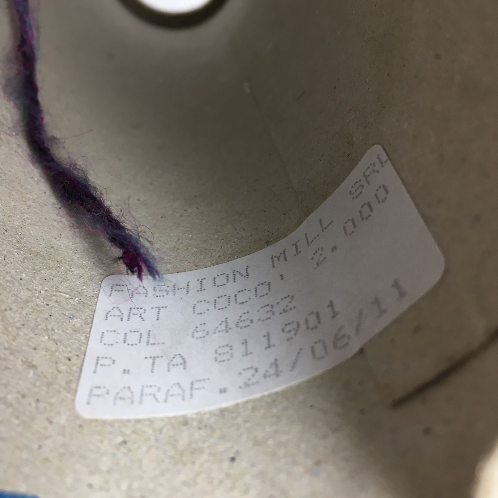 COCO' - Fashion Mill, 38% шерсть, 30% п/а, 14% мохер, 18% п/э; 200м/100гр; col. 64632; фактурная нить с утолщениями. Образец связан в одну нить на спицах №5