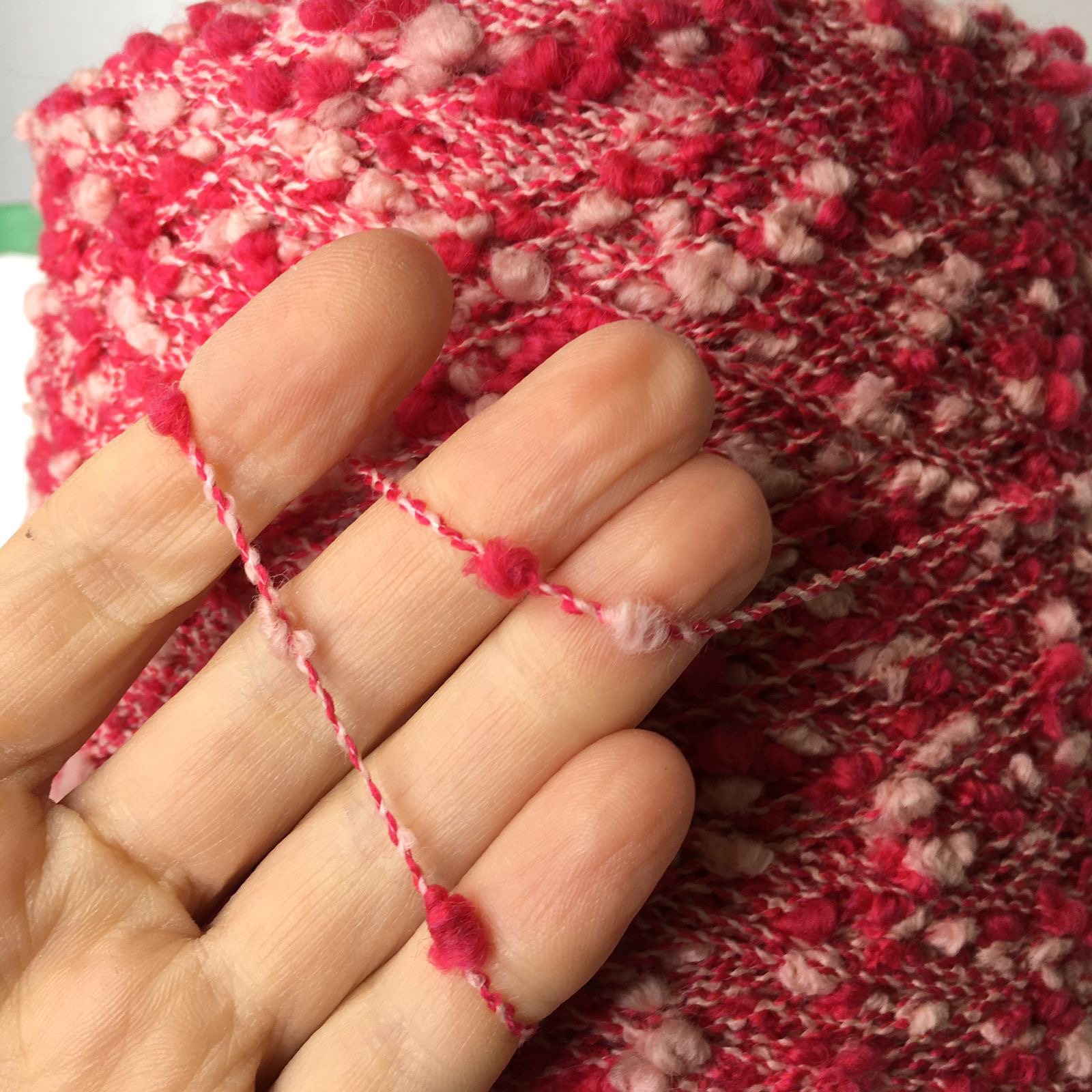 DALMATA - Lineapiu; 91% меринос, 9% п/а; 180м/100гр; col. B6105 ROSA FUXIA. Образец связан в одну нить на спицах №4