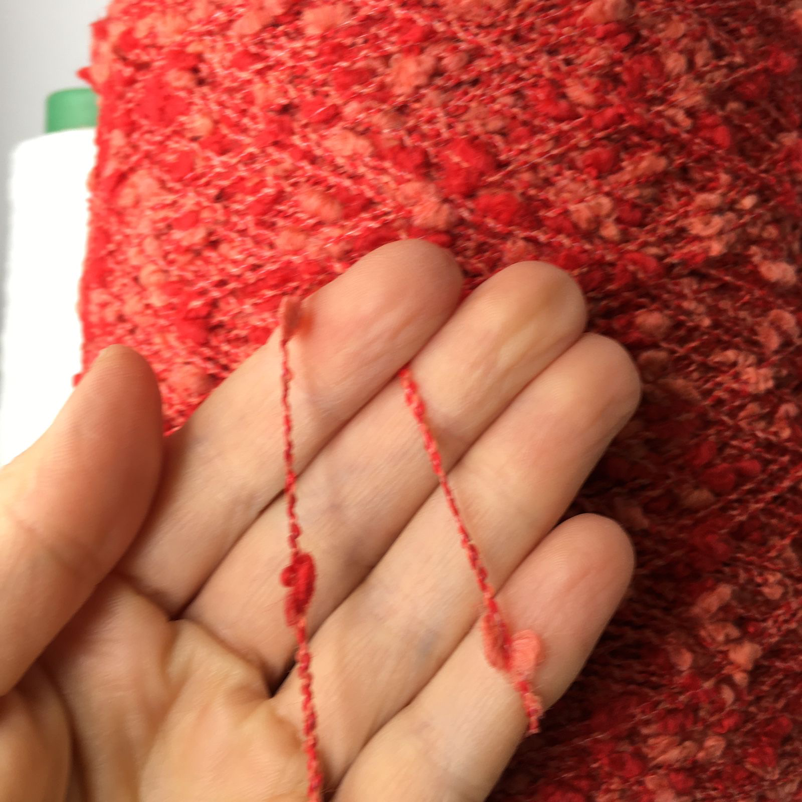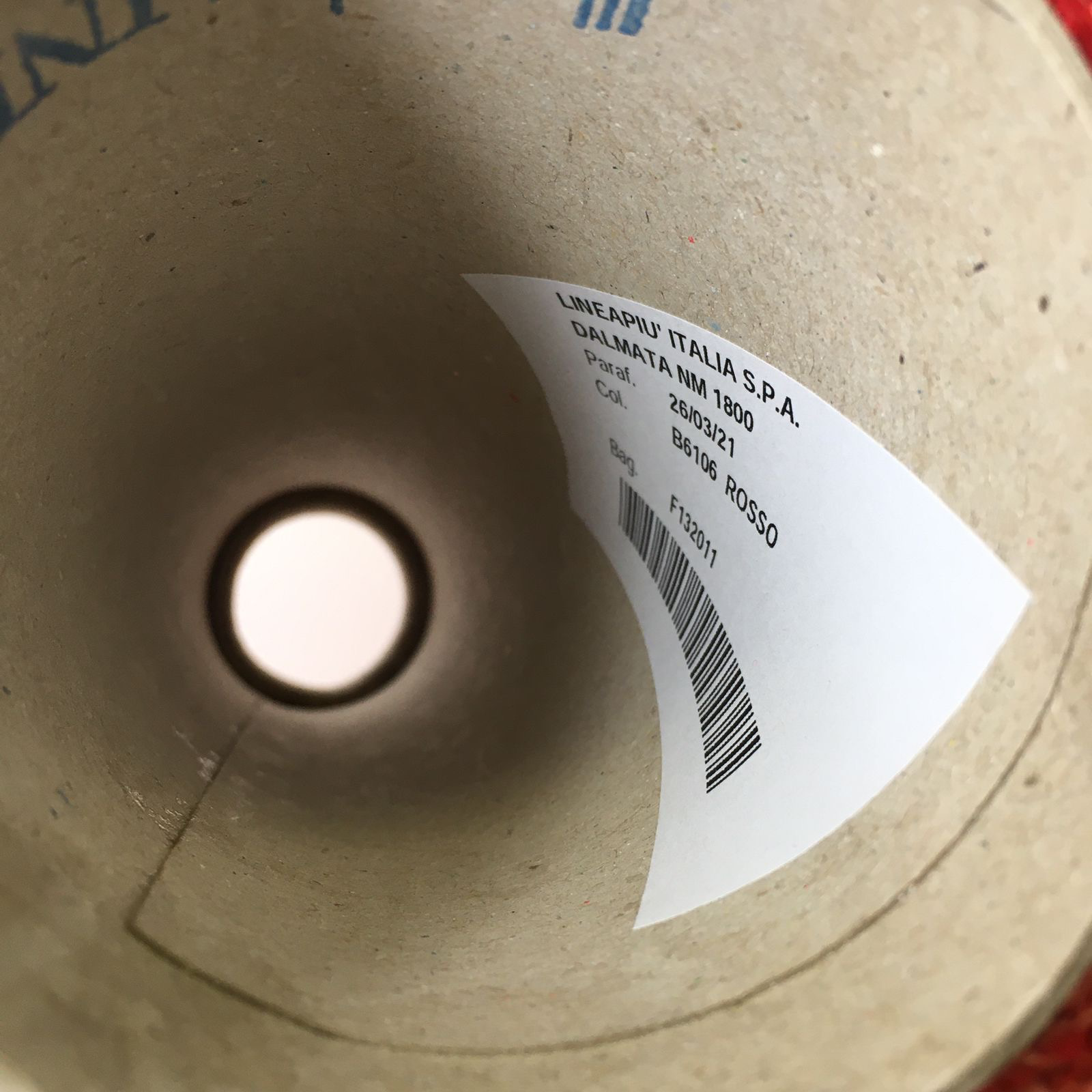 DALMATA - Lineapiu; 91% меринос, 9% п/а; 180м/100гр; col. B6106 ROSSO. Образец связан в одну нить на спицах №4