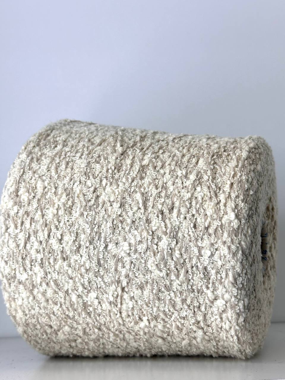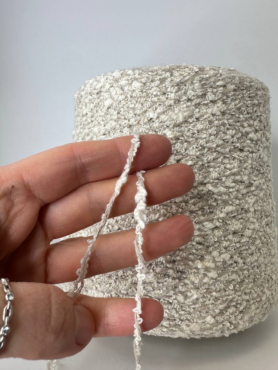 ECUADOR - Lineapiu; 43% лён, 43% хлопок, 14% п/а; 150м/100гр; цвет: на бежевой нити букле топлёное молоко