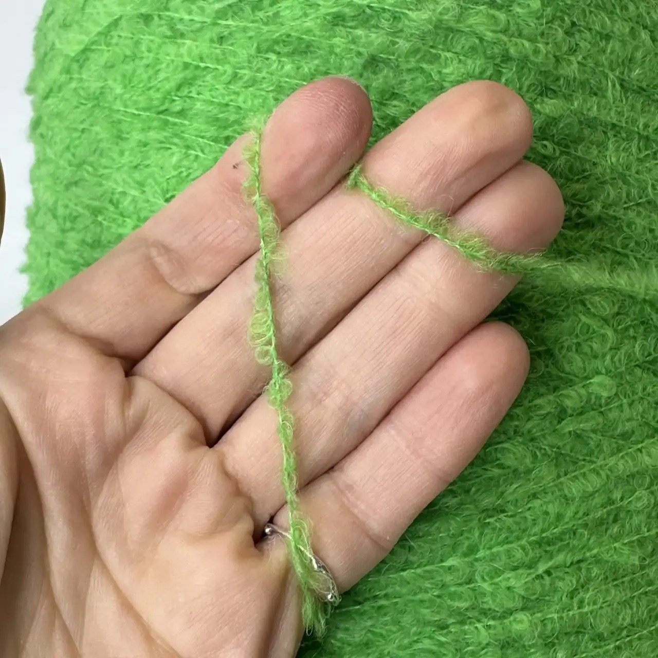 ESKIMO UNITO - Lineapiu'; 14% меринос, 36% альпака Superfine, 15% п/а, 35% акрил; 400м/100гр; Букле; col. MC549, цвет: ярко зелёный