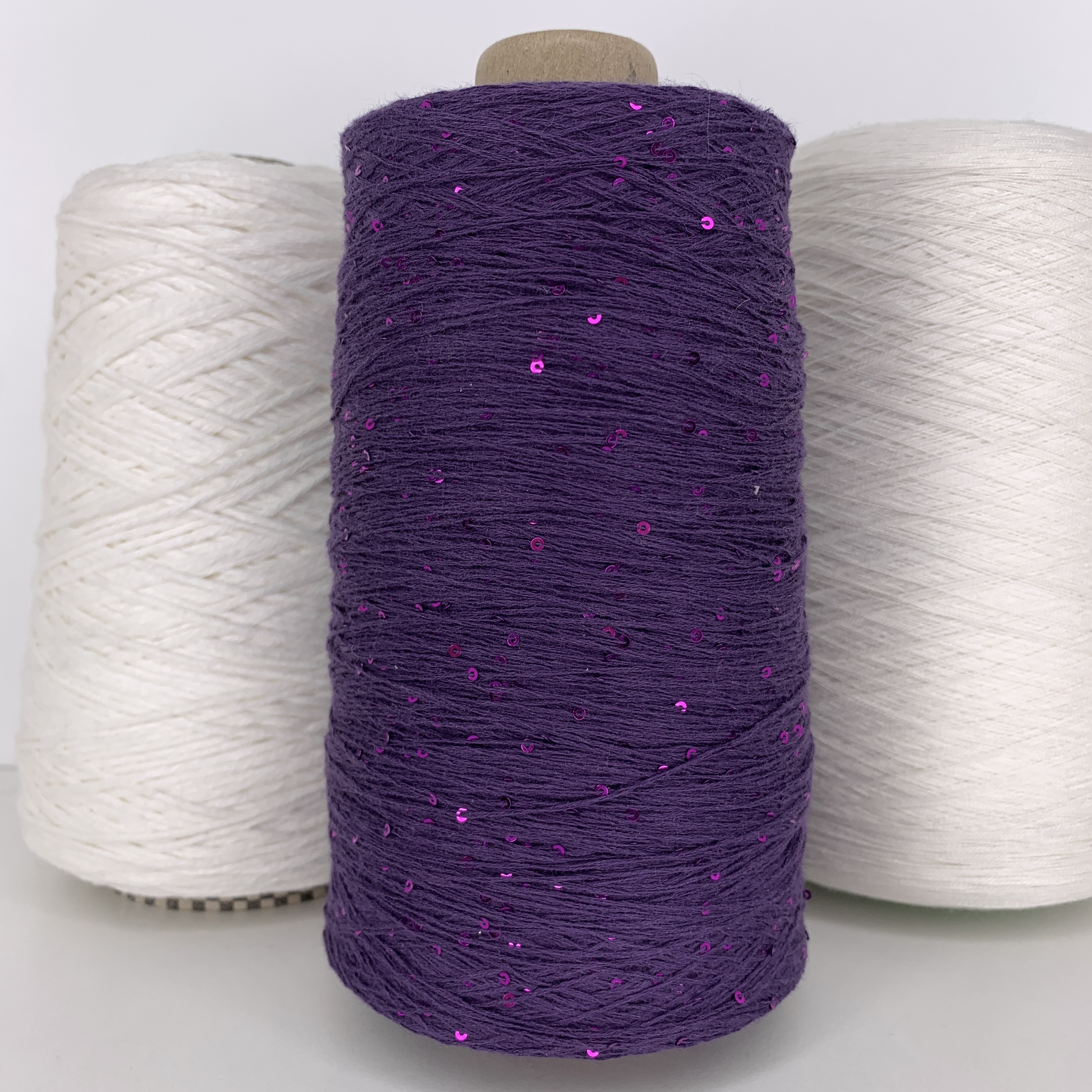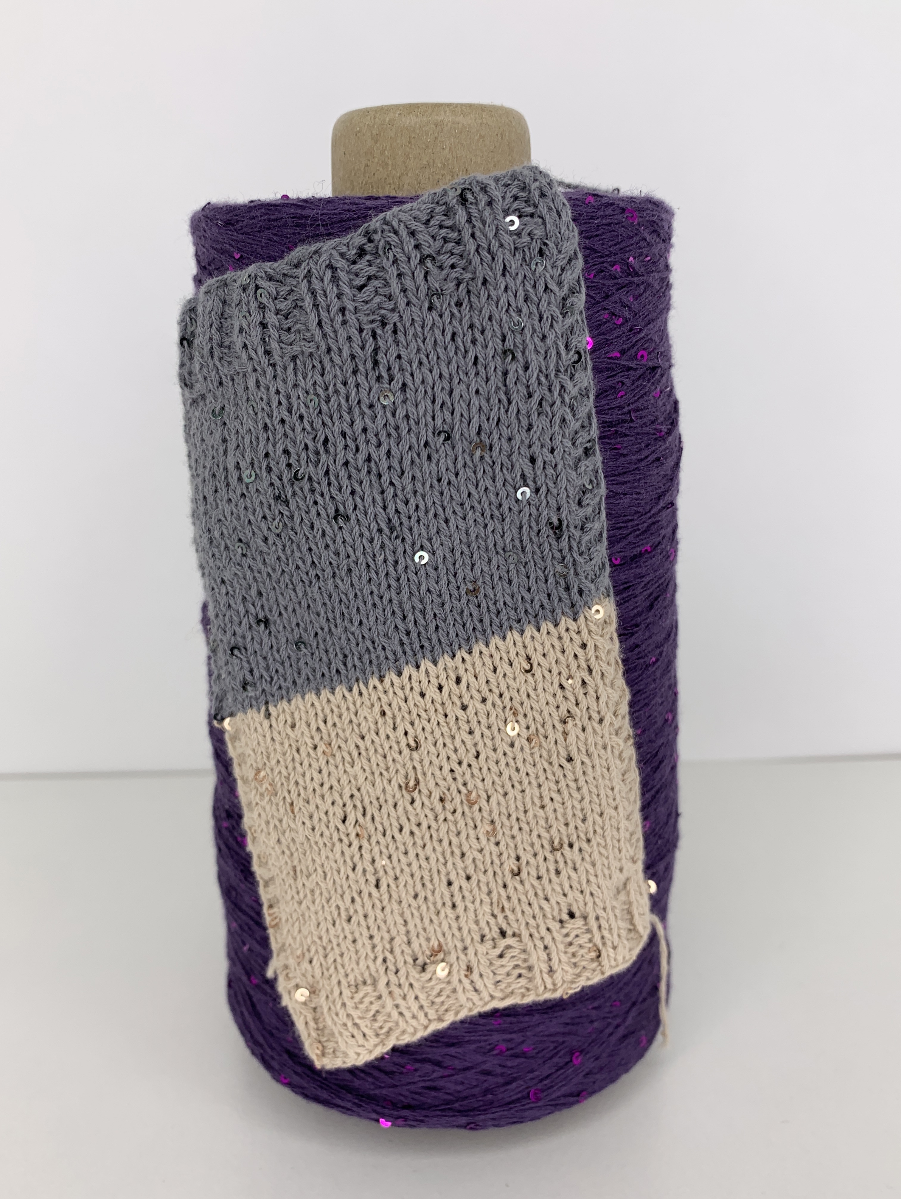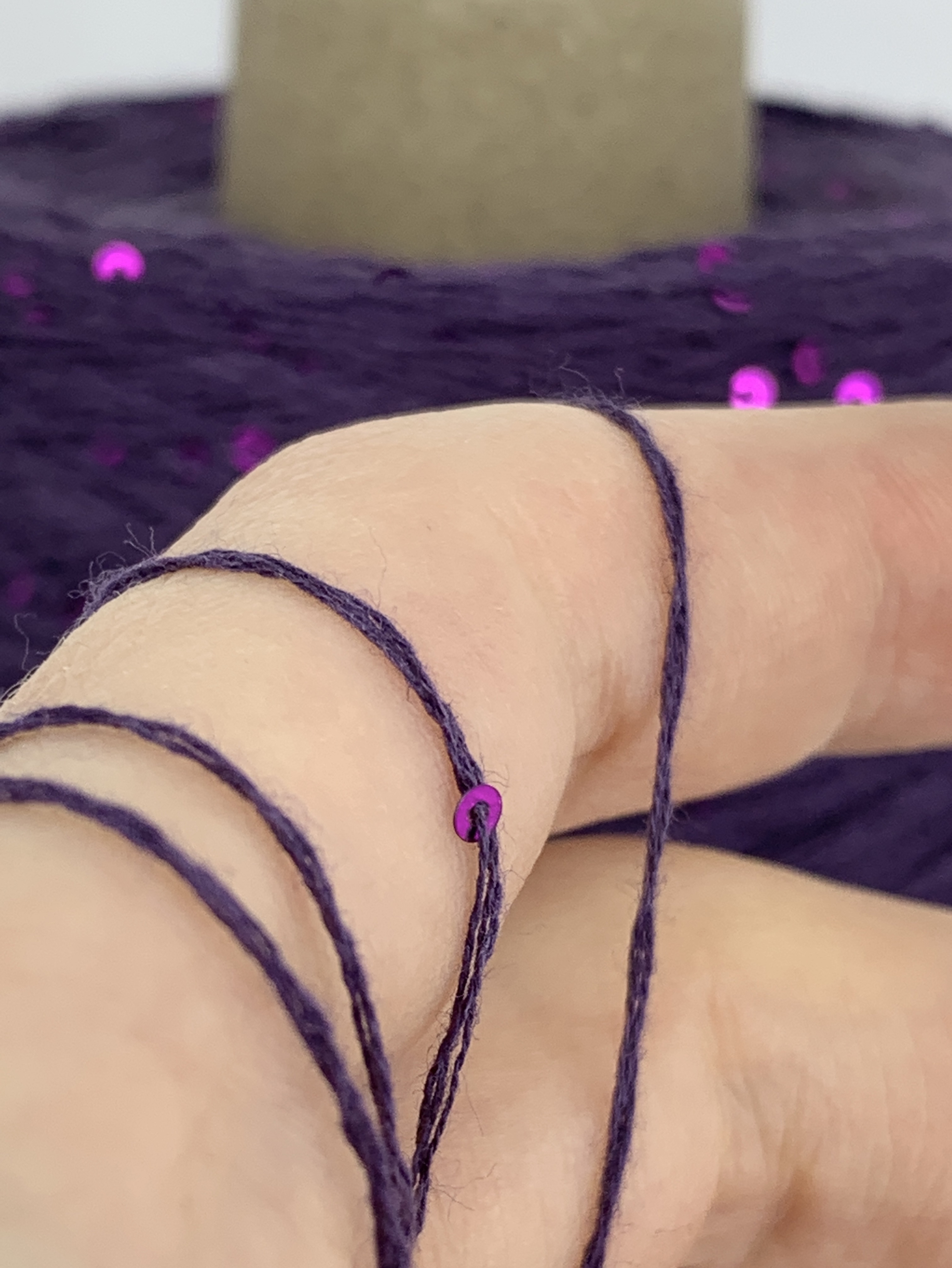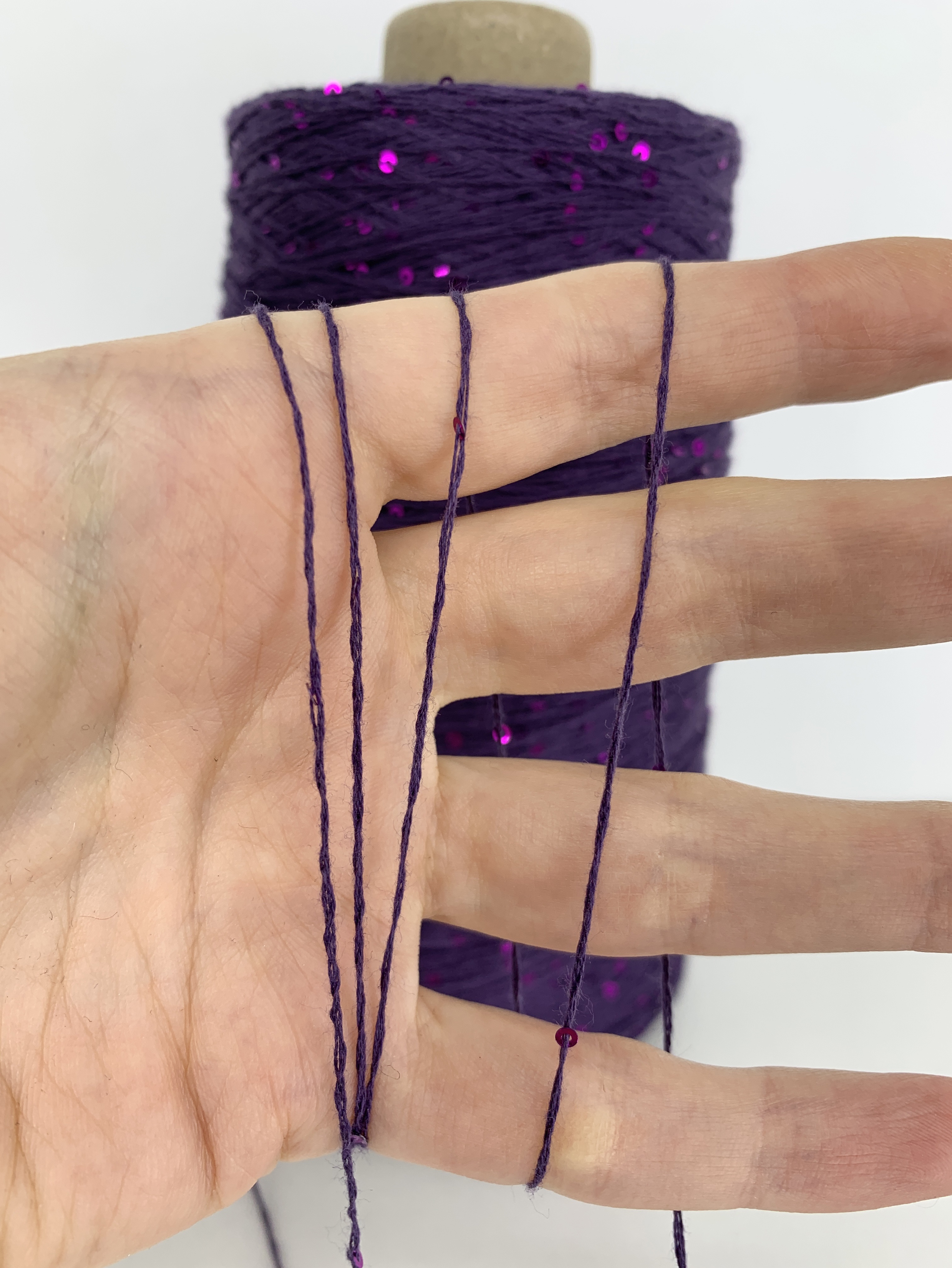 FORTE; 100% хлопок, пайетки 2мм; 640м/100гр; цвет: припыленная темно-фиолетовая нить, пайетки сиренево-малиновые.
