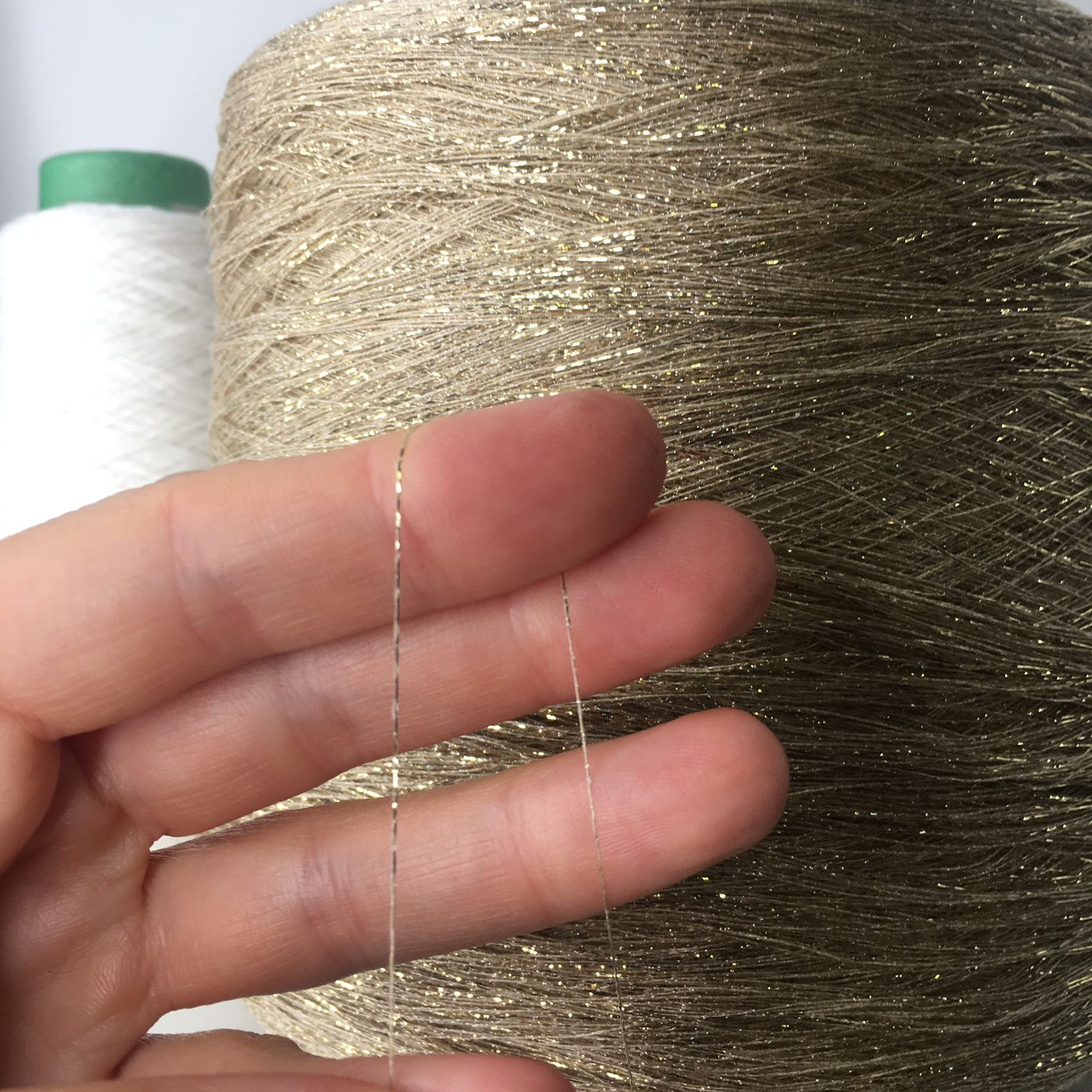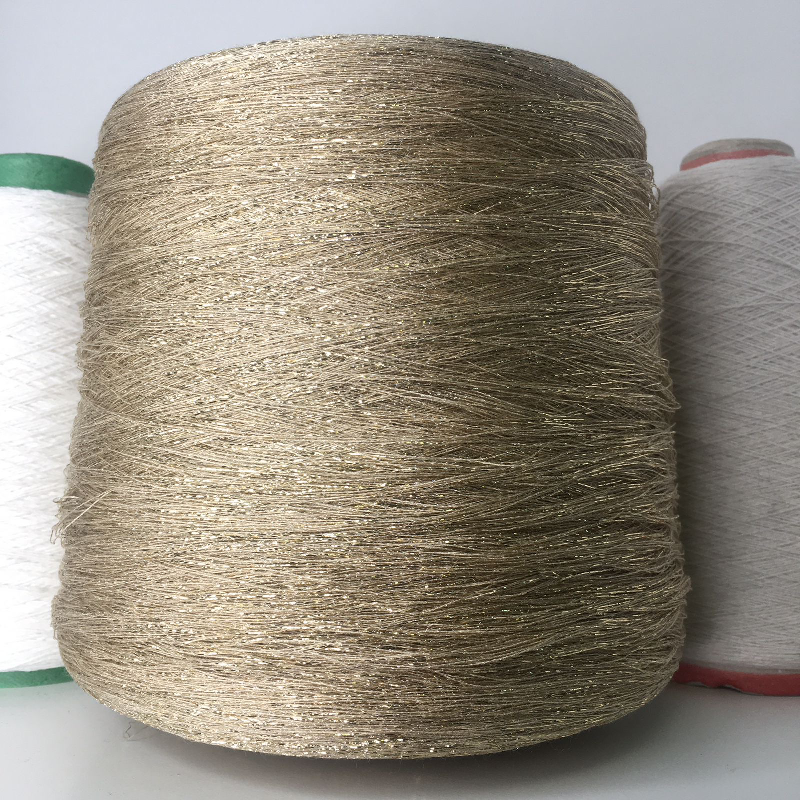 FRIZZANTE - Industria Italiana Filati; 70% вискоза, 15% металлизированный люрекс, 15% п/а; 3500м/100гр; col. 2039, цвет: бежевая нить с серебристым люрексом