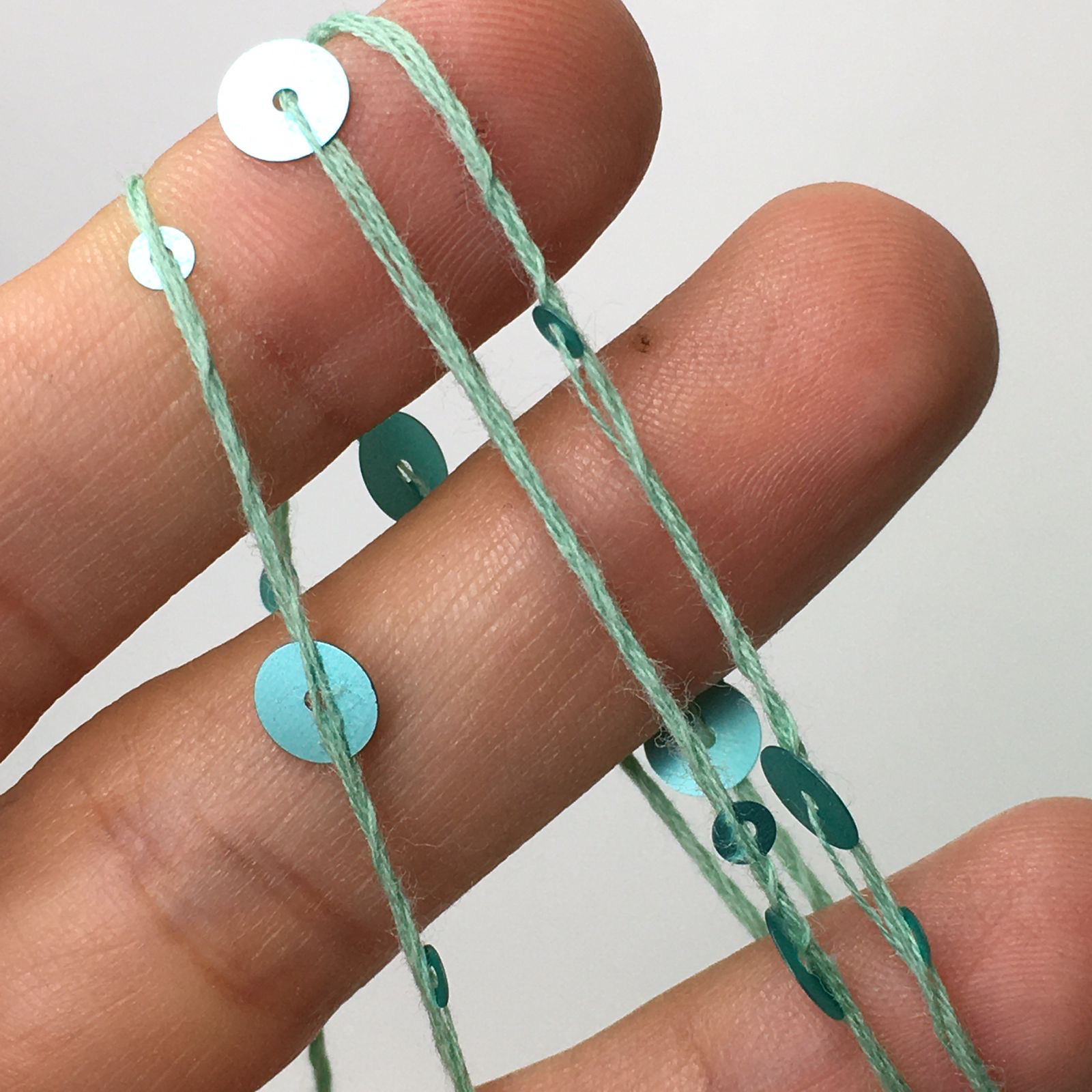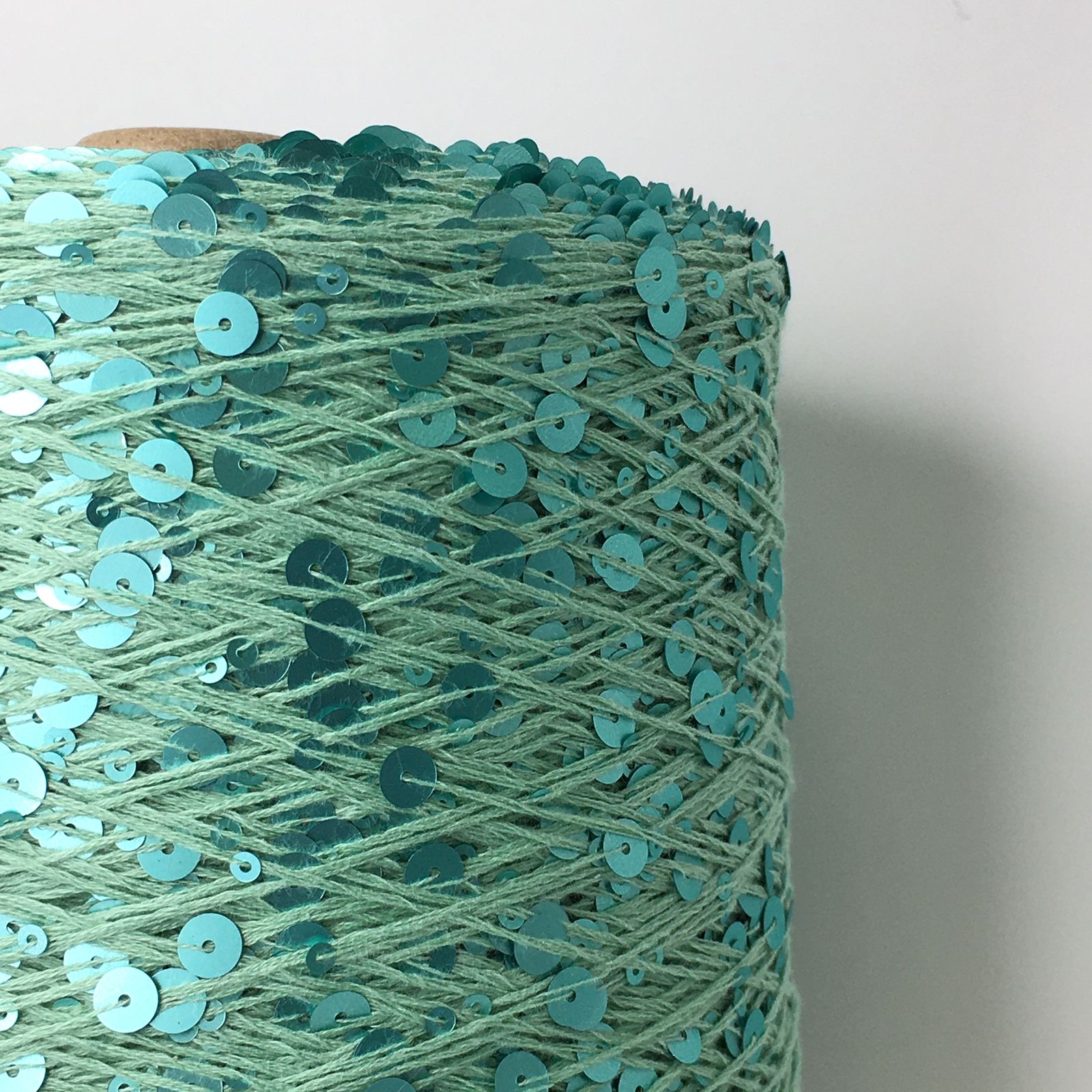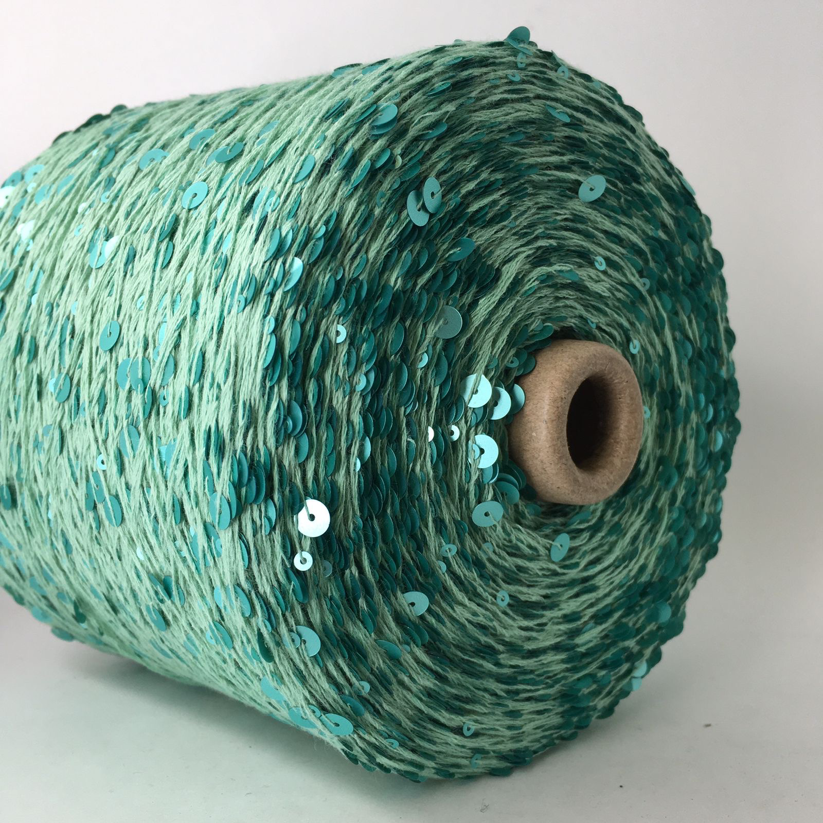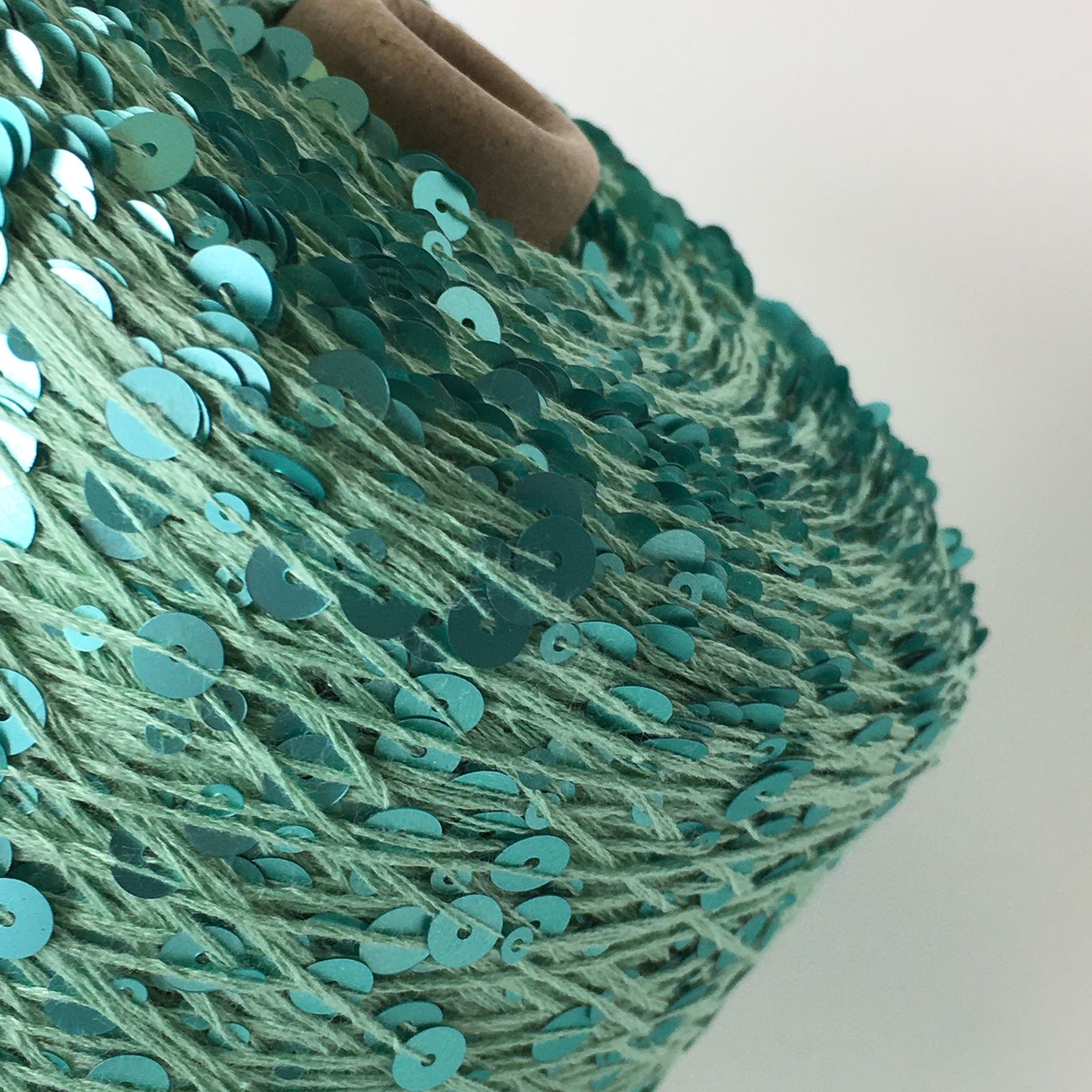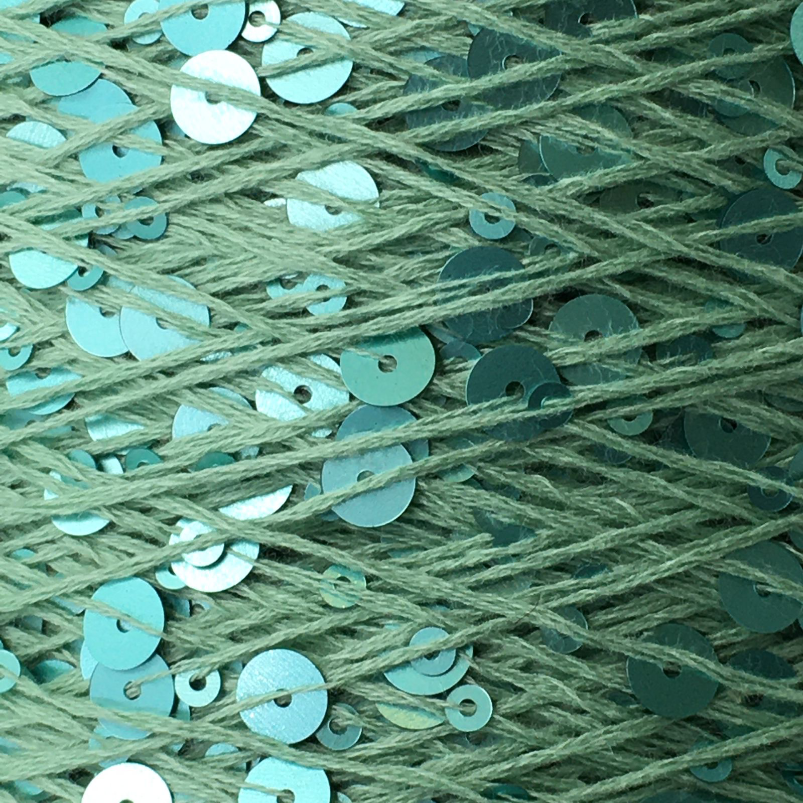 GLAMOUR ; 100% хлопок, пайетки 3 мм и 6 мм; 240м/100гр; цвет: нить - припылённо-бирюзовый, пайетки - сатиновые, бирюзовые матовые