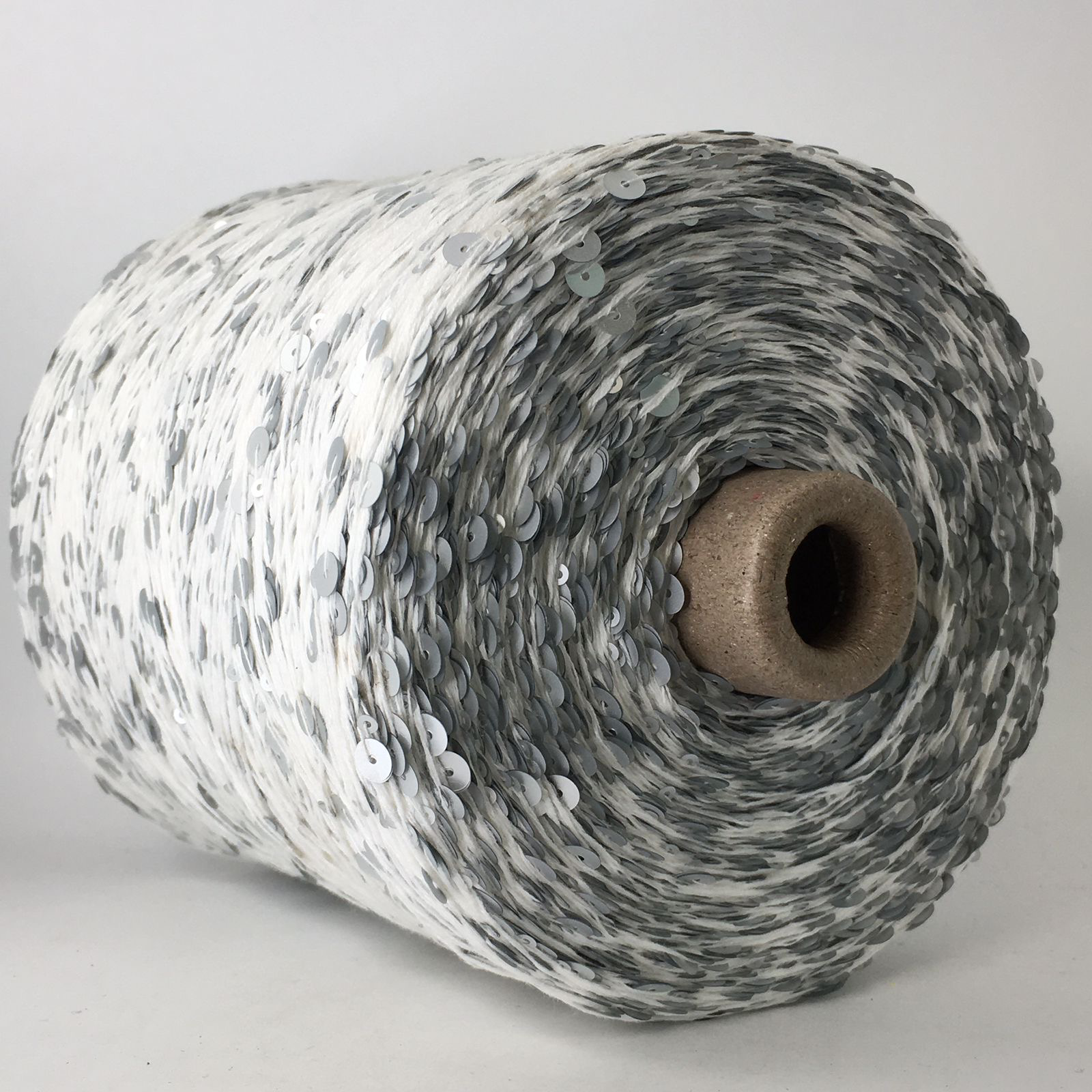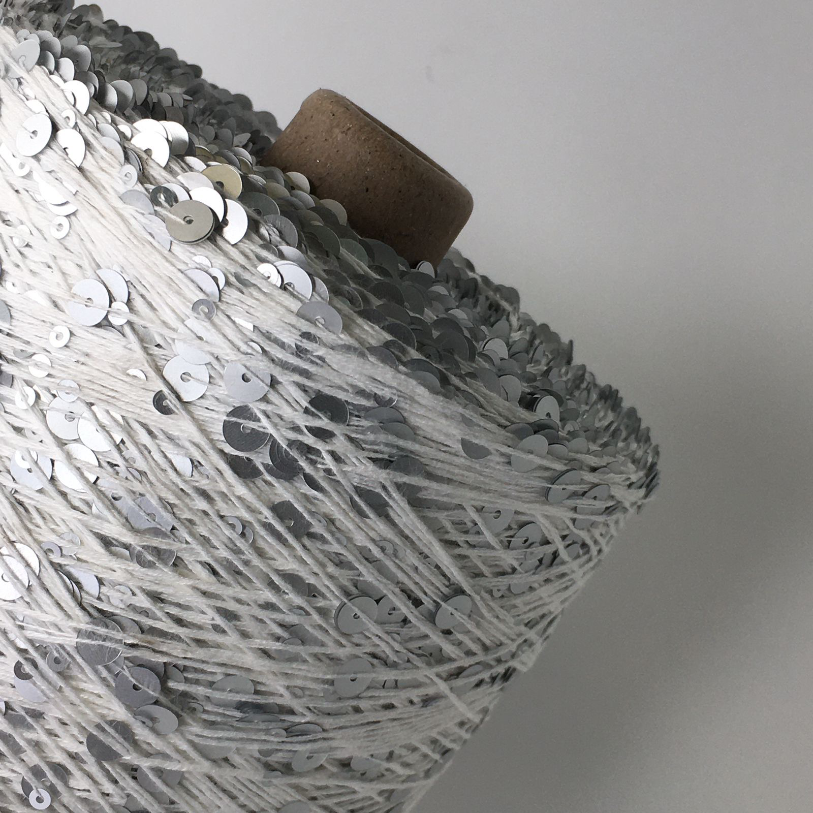GLAMOUR; 100% хлопок, пайетки 3мм и 6мм; 240м/100гр; цвет: белая нить, серебряные матовые пайетки, сатиновые