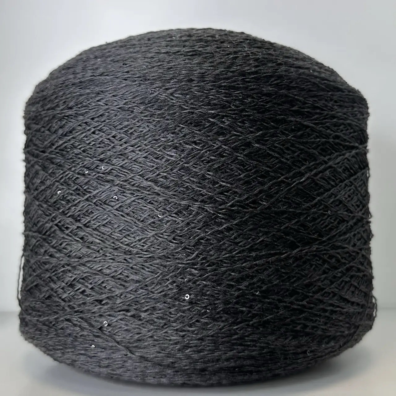 LINETTE PAILLETES - 80% лен, 20% п/а, микропайетки 2мм, ; 450м/100гр; цвет: тёмный графит, пайетки чёрные глянцевые