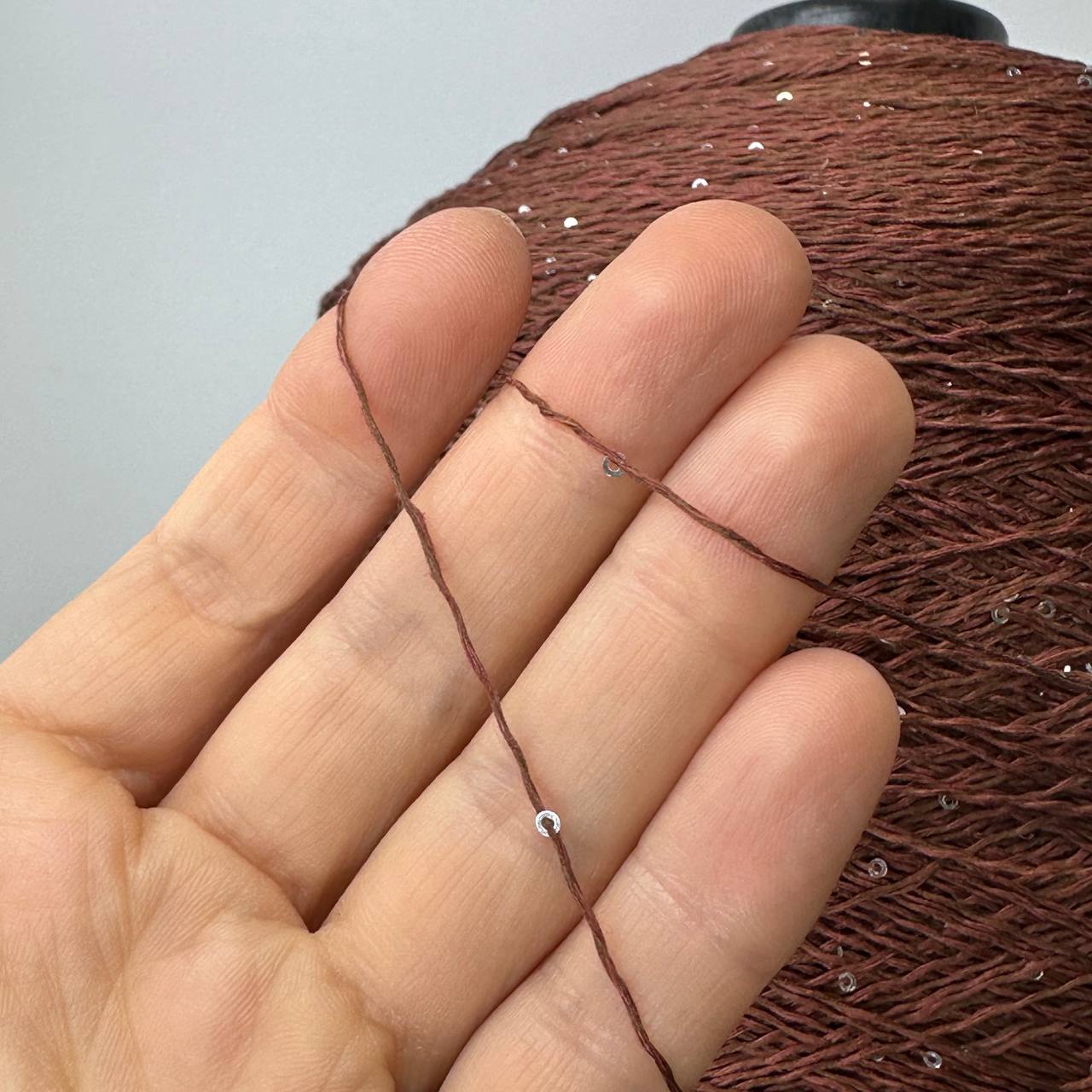 LINETTE PAILLETES - 80% лен, 20% п/а, микропайетки 2мм, ; 450м\100гр; цвет: «коньяк», пайетки серебро