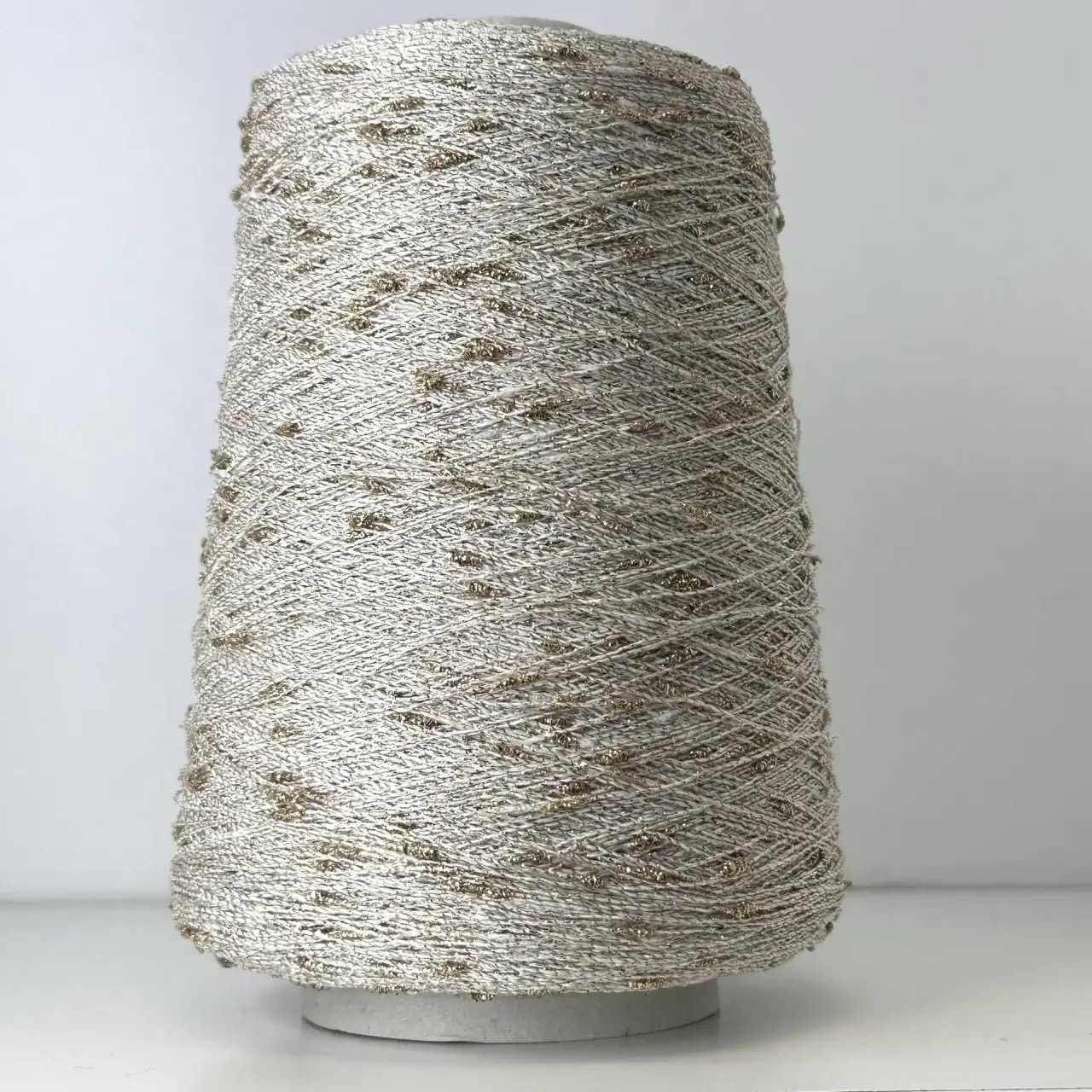 LUCKY STAR - Luxury Selection by Ri.Go; 75% вискоза, 5% п/а, 20% люрекс; 900м/100гр; col. 19022, цвет: светло-бежевая нить с золотым люрексом