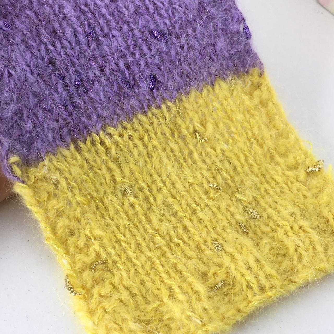 Сиренево-желтый образец связан в две нити (одна нить Lucky Star и одна нить Absolute) на спицах №3,5,