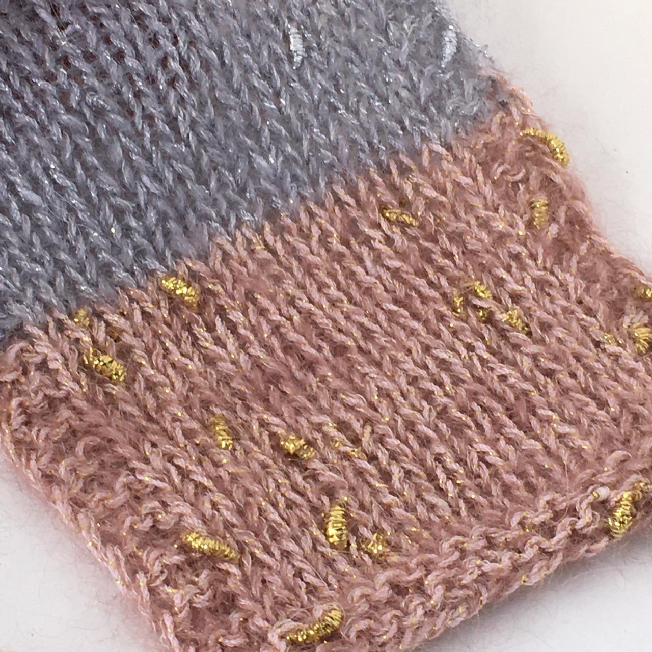 Серебряно-розовый образец связан в две нити (одна нить Lucky Star, одна нить SILKID) на спицах №3.5