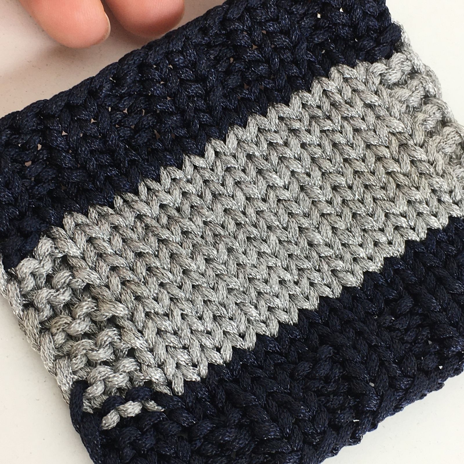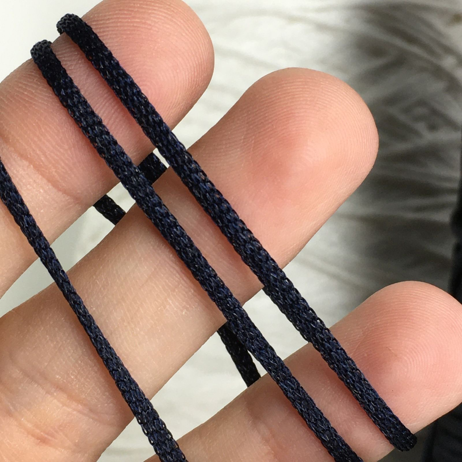 METAL PARK - Be.Mi.Va.; 59% вискоза licida, 41% нейлон; шнурок с объемным наполнителем; 230м/100гр; col. NAVY, цвет: тёмно-синий; S907. Образец связан в одну нить на спицах №3,5