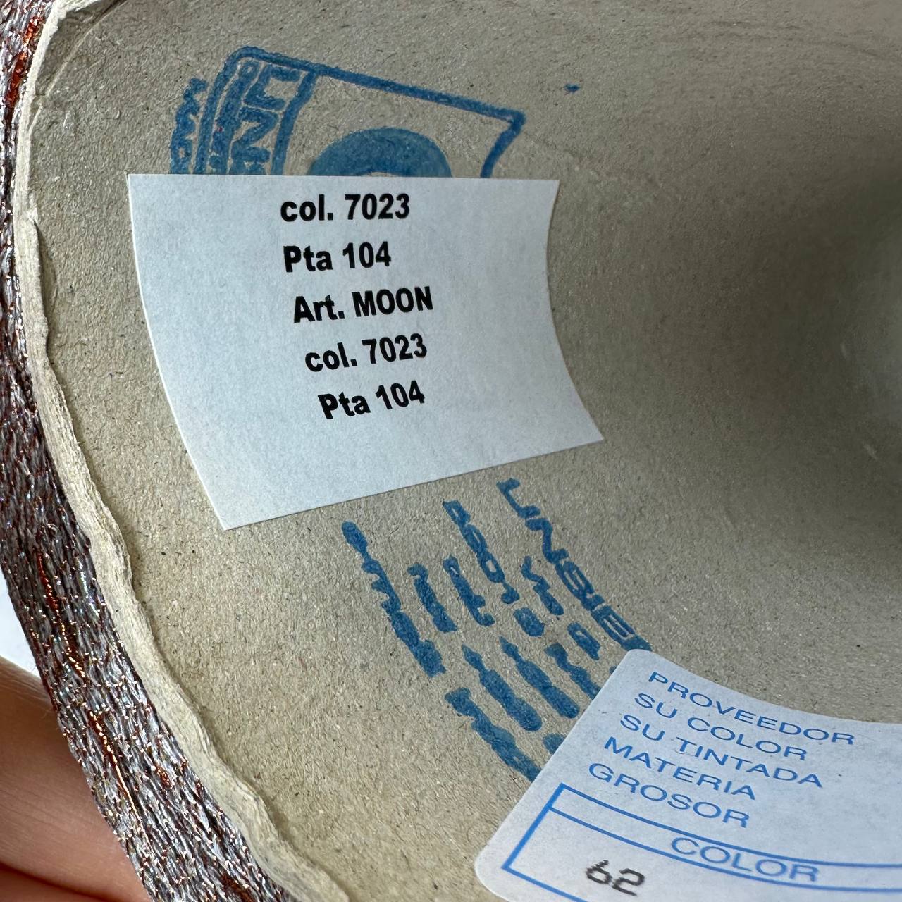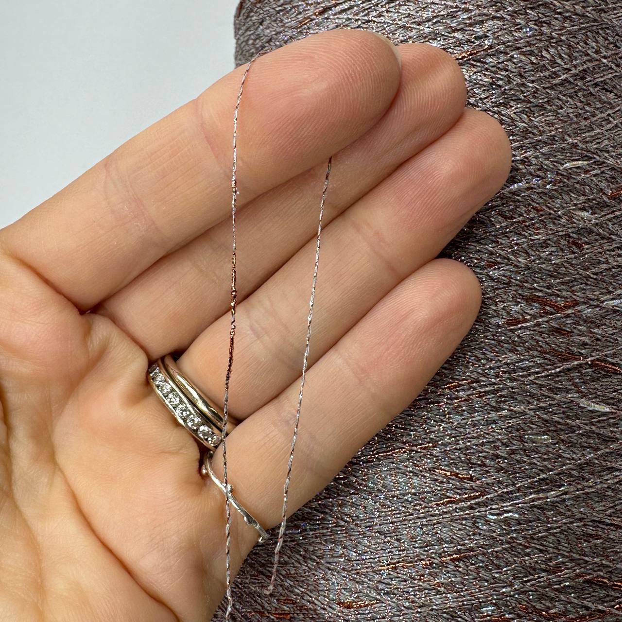 MOON - Linsieme; 80% вискоза, 20% люрекс; 2000м/100гр; col. 7023, цвет: светло-серый с серебристо-сиреневым люрексом и рыжими и голубыми «шишечками»