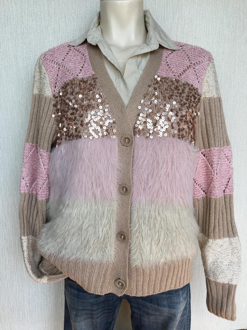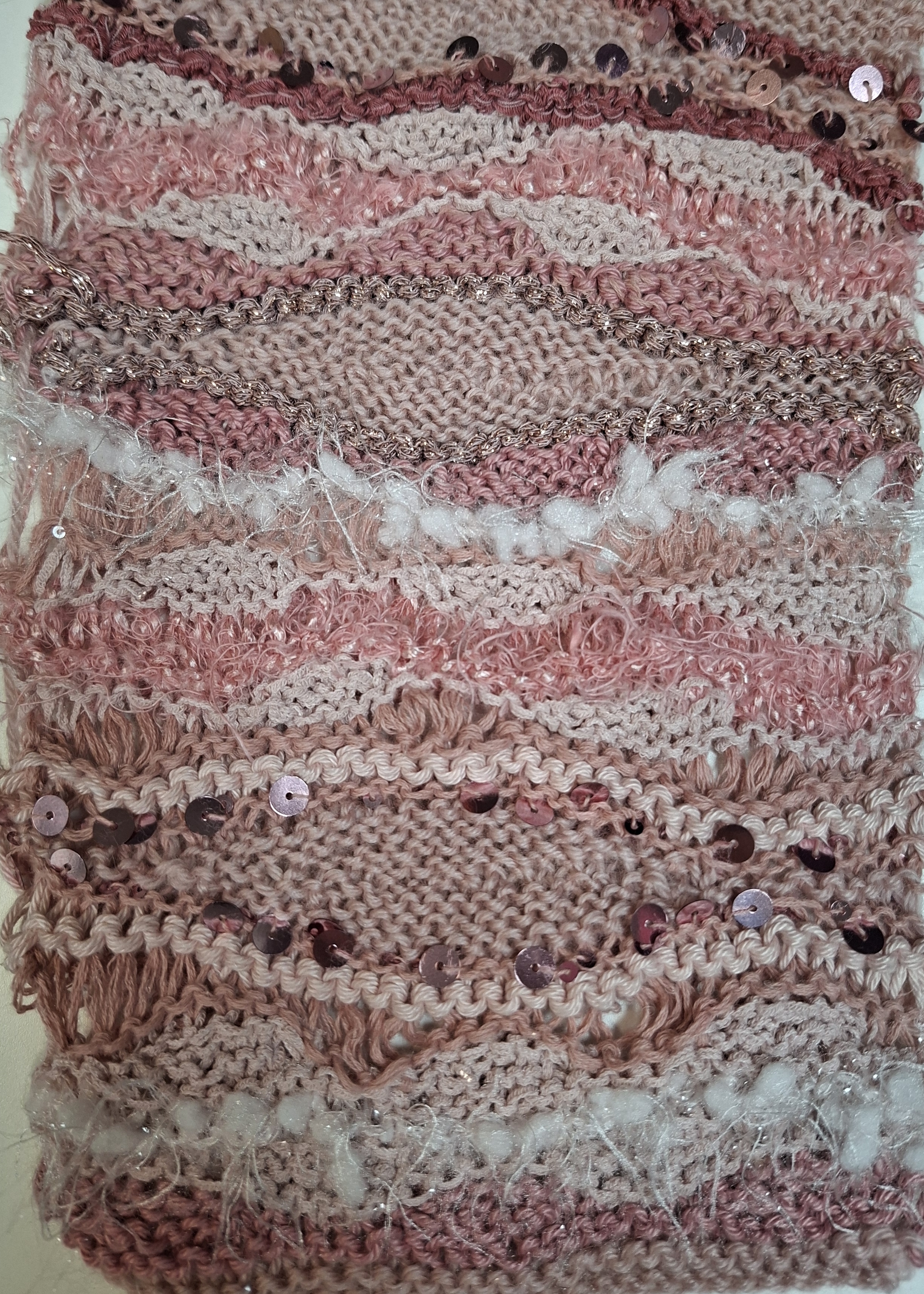 Набор летний итальянской фантазийной пряжи для футболки, джемпера "Сатиновая Роза NEW"; Состав: пайетки 3 и 6 мм, хлопок, фактурная ленточка, травка фибра, деликатный люрекс; Общий вес: 550 гр