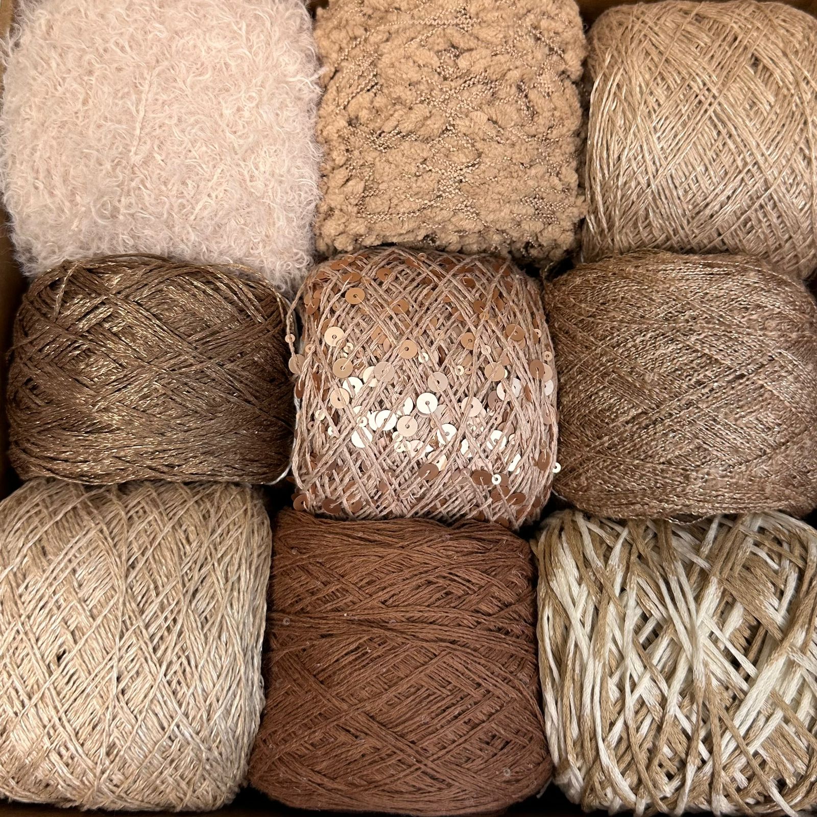Набор итальянской фантазийной пряжи для джемпера "Cucinelli New"; общий вес: 540гр; состав: хлопок, вискоза, фибра, пайетки
