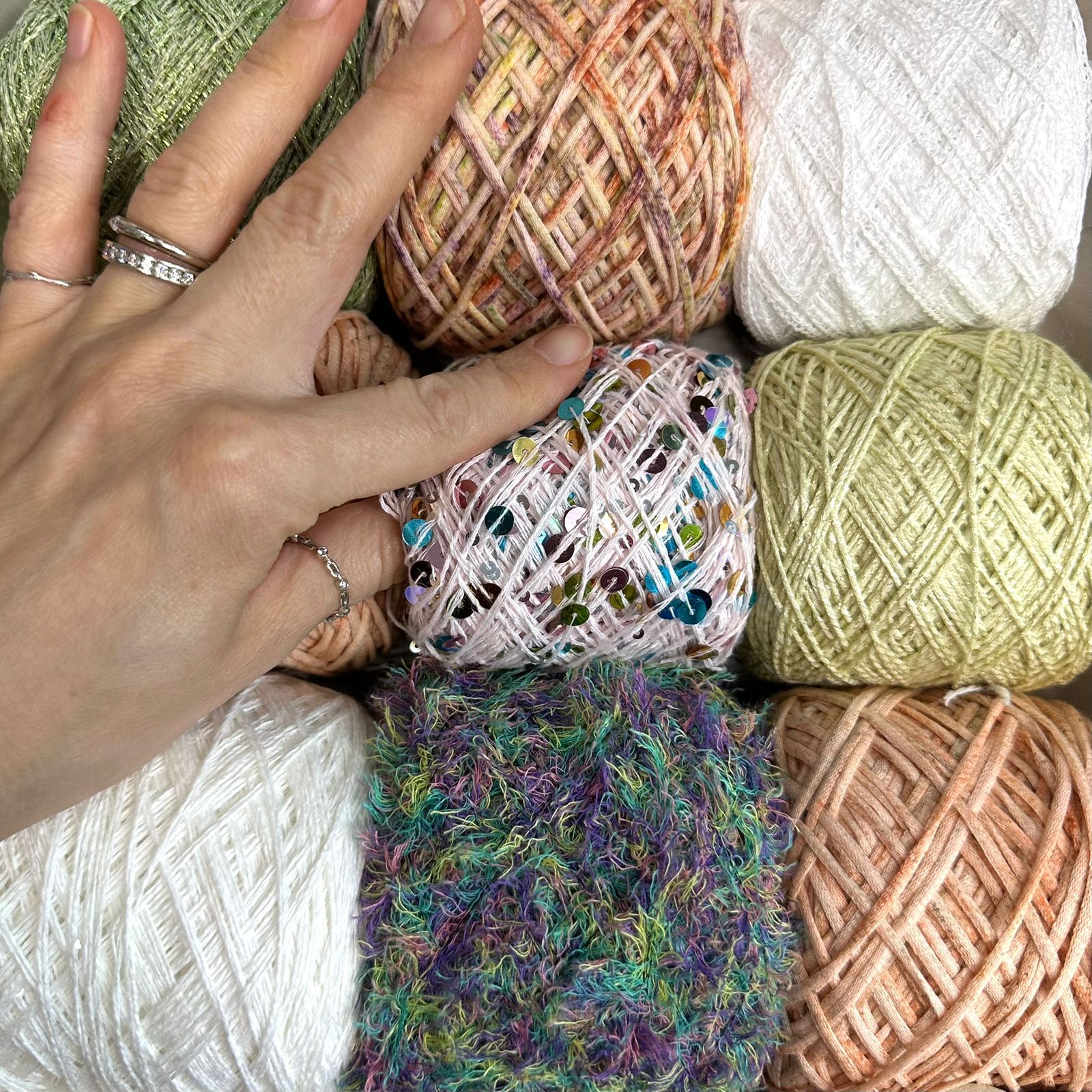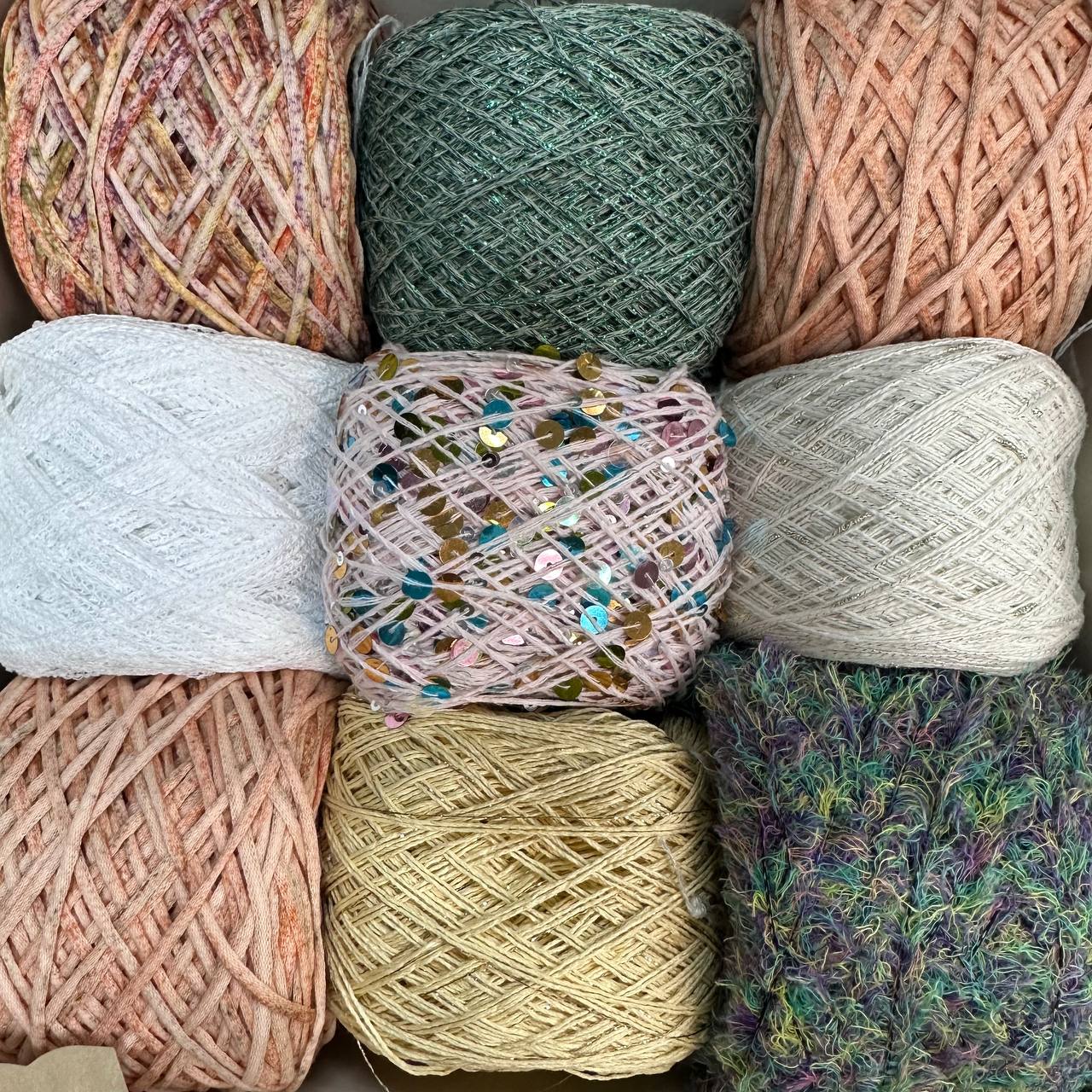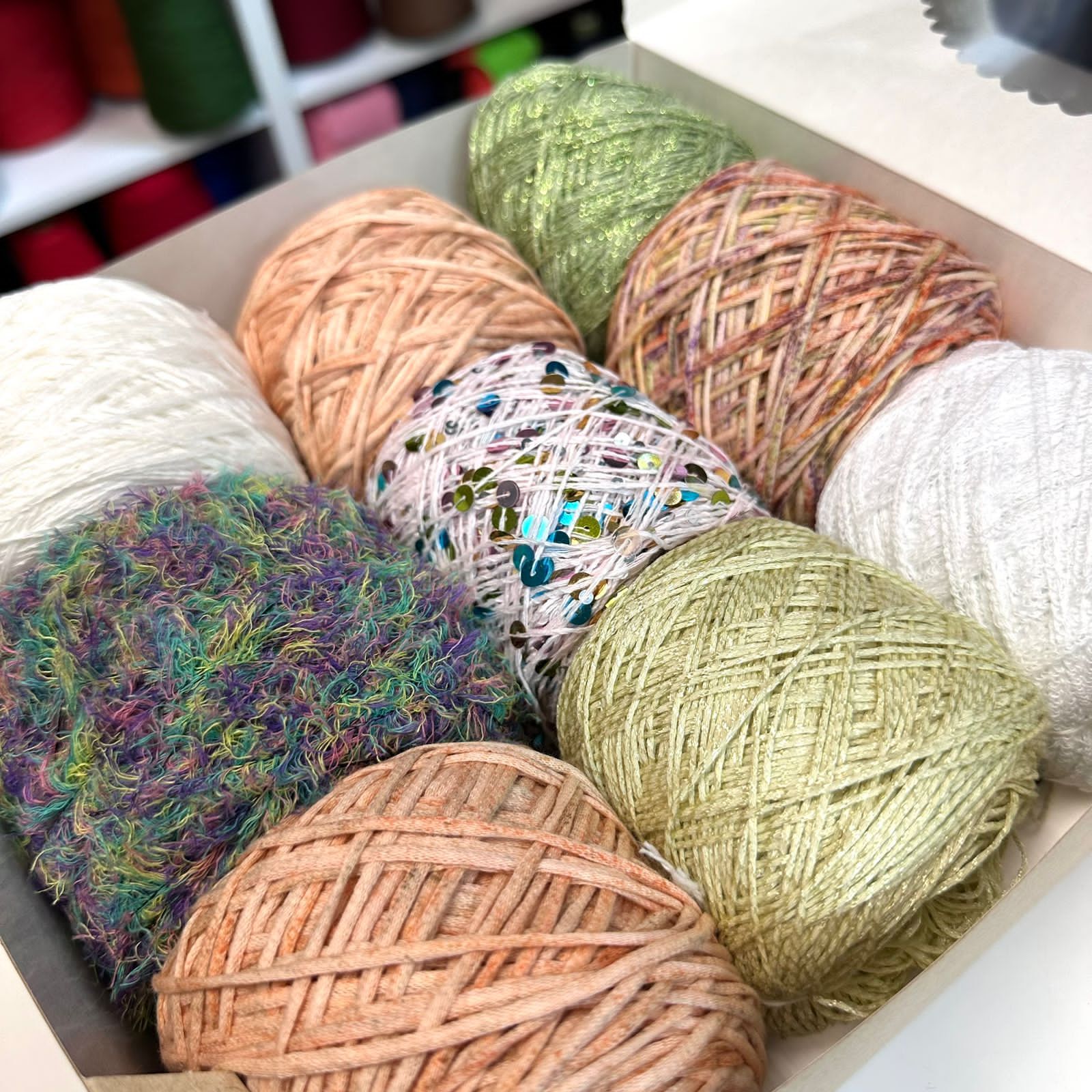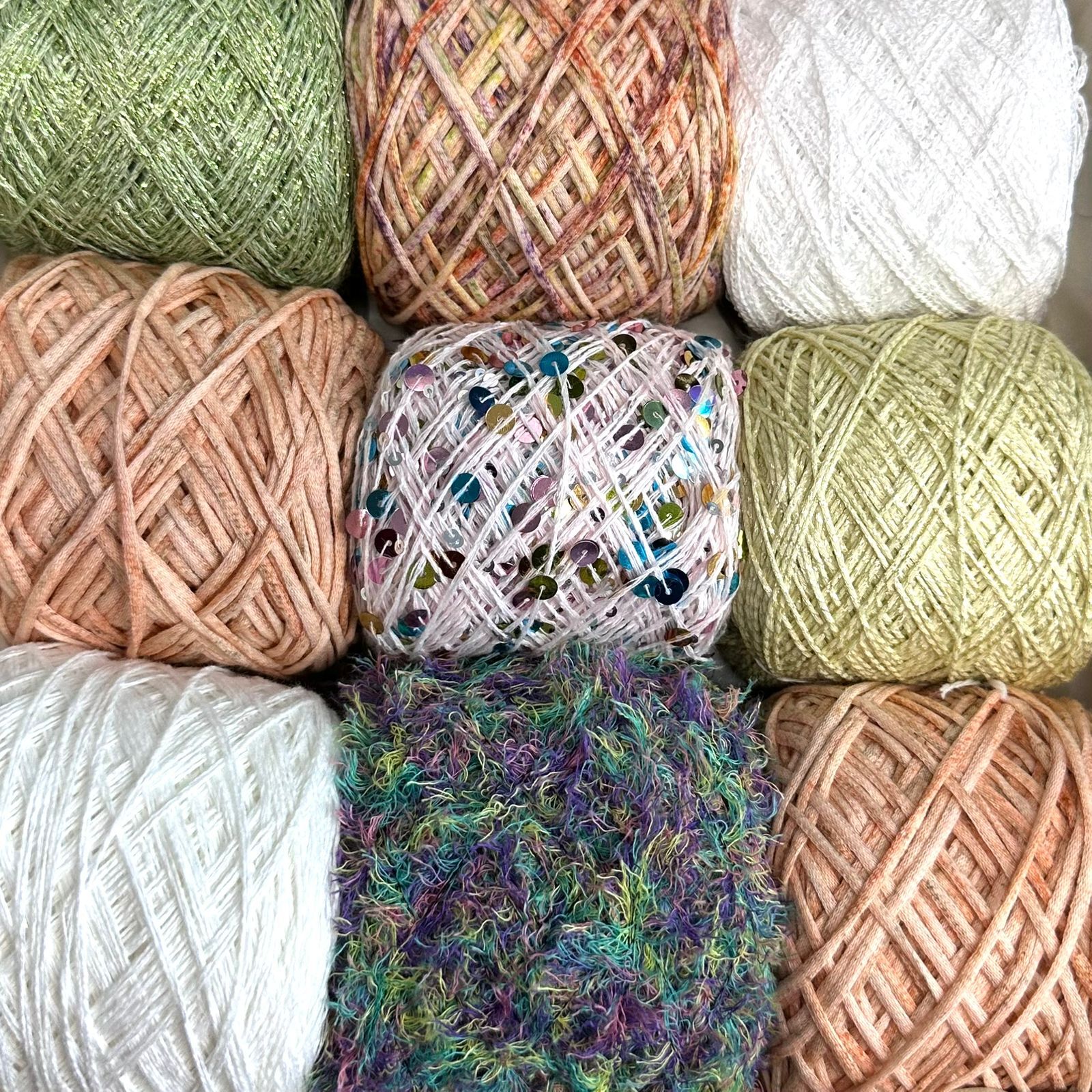 Набор летний итальянской фантазийной пряжи для топа, футболки, джемпера "МОНЕ"; состав: хлопок, вискоза, пайетки, люрекс; общий вес: 540 гр