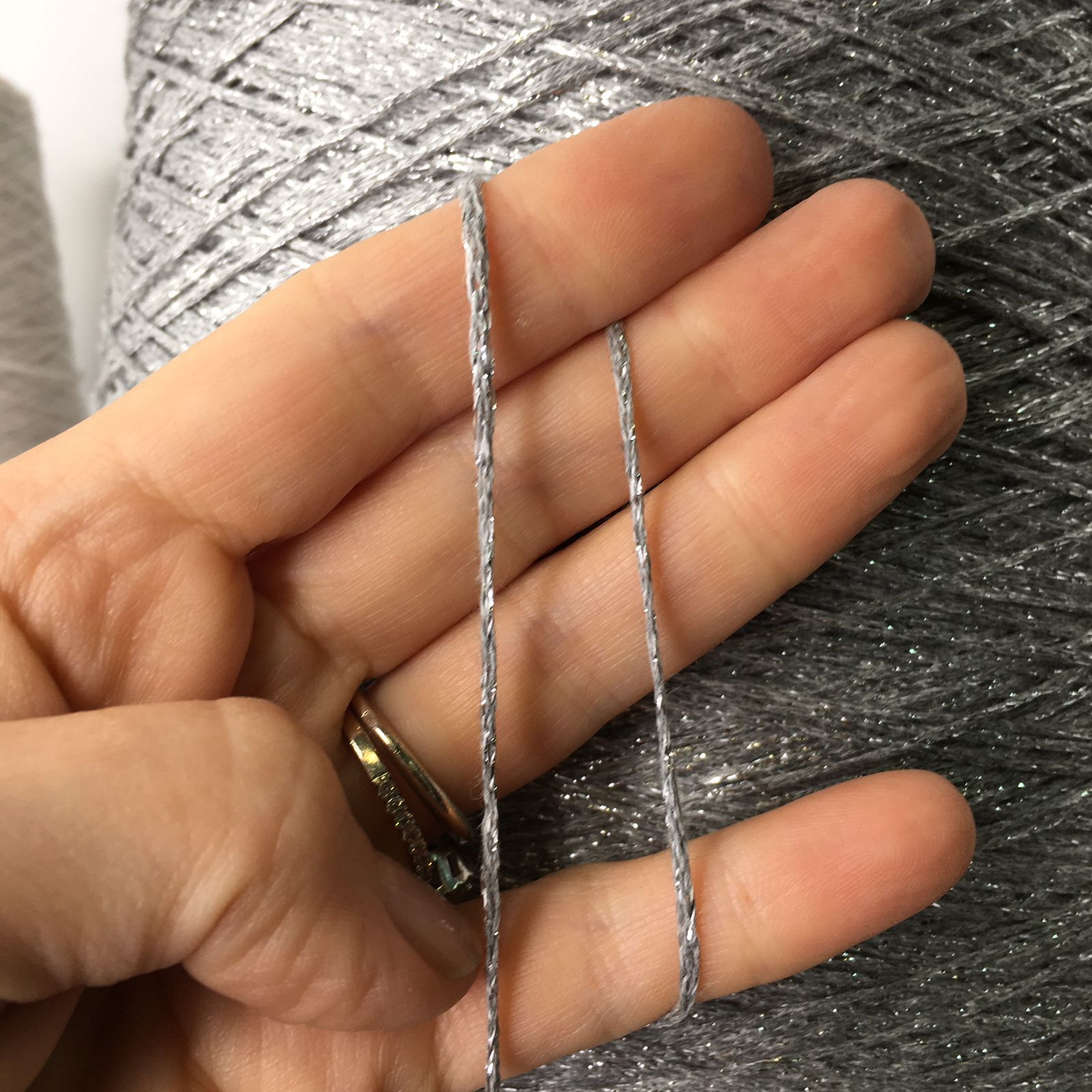 COTLUR - Ri.Go; 95% хлопок, 5% люрекс; 400м/100гр; цвет: серый шнурок с серебристым люрексом