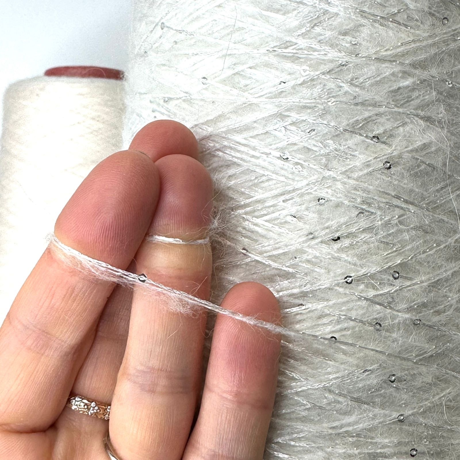KIDPAI - LAGOPOLANE; 14% кидмохер, 14% нейлон, 52% п/а, 17% акрил, 3% пайетки; 400м/100гр; col. 8504, цвет: белый, пайетки серебро