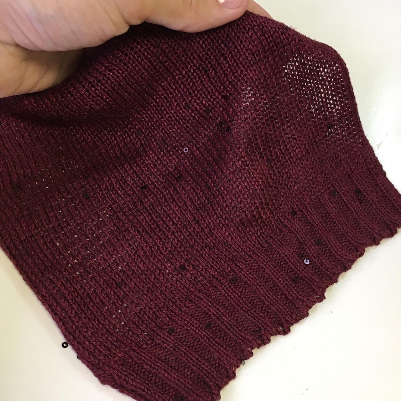 SELIN - Luxury Yarn Rigo; 97% лен, 3% шелк, микропайетки 2мм; 500м/100гр; Образец связан на машине в одну нить