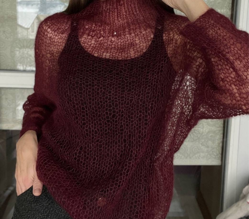 Серебряно-розовый образец связан в две нити (одна нить Lucky Star, одна нить SILKID) на спицах №3.5