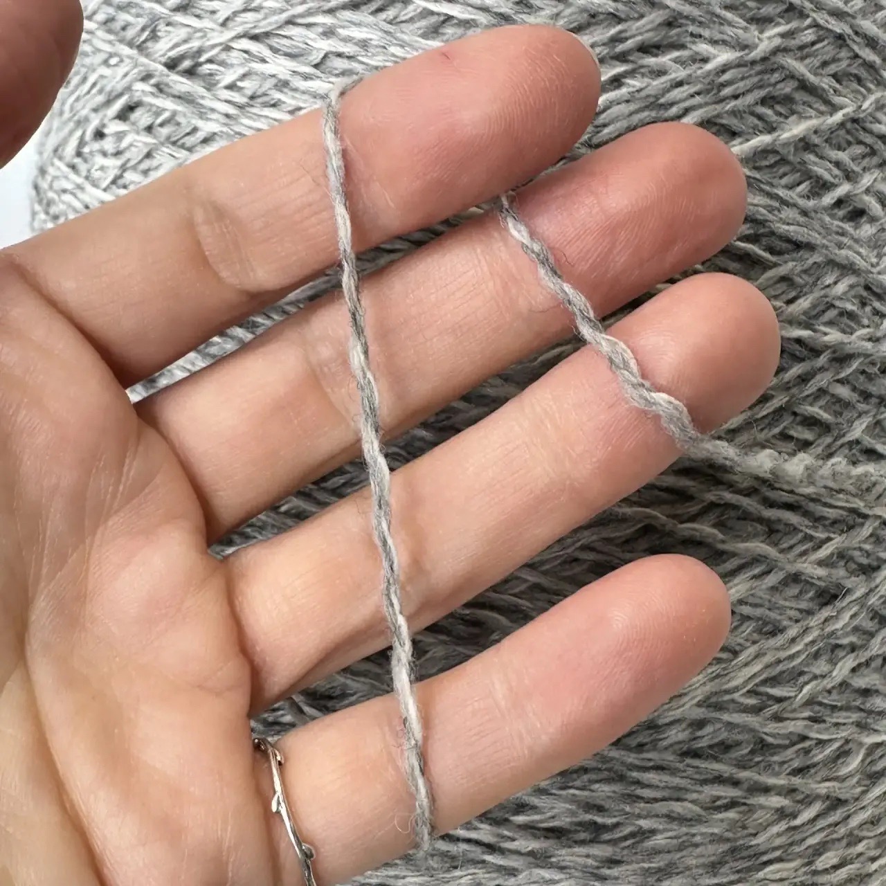 SOFTSTRATYAK - Millefili; 76% меринос, 8% як, 15% п/а, 1% эластан; 320м/100гр; col. 126733, цвет: "полярная сова" скрутка из нитей серого и светло-серого цвета
