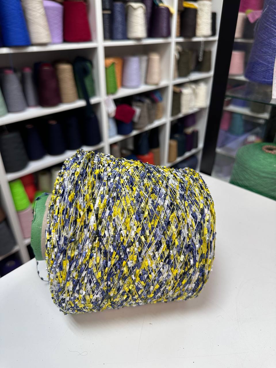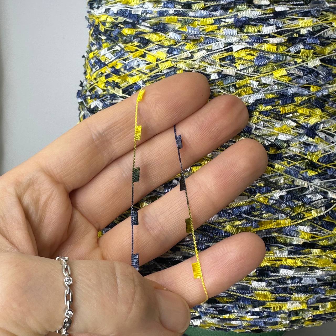 STRIZZOLINA - Di.Ve; вискоза, п/а; 500м/100гр; Мелкая травка фрагментами; цвет: бело-сине-желтая