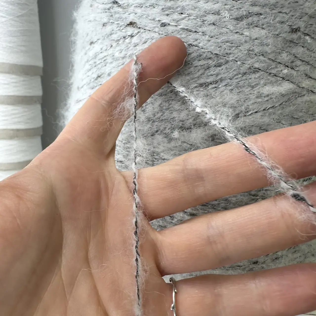 RIBES TWEED - Di.Ve S.p.A.; 38% альпака superfine, 31% вискоза, 31% п/а; 300м/100гр; col. 010434, цвет: светло-серая на черной основе