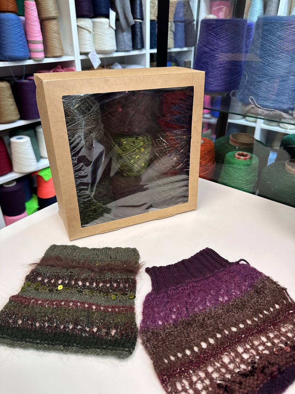 Теплый набор из итальянской фантазийной пряжи для свитера или кардигана «ДРИАДА»; состав: кашемир, вспушенная альпака, пайетки, кидмохер, мягчайший меринос, люрекс; Общий вес: 560гр