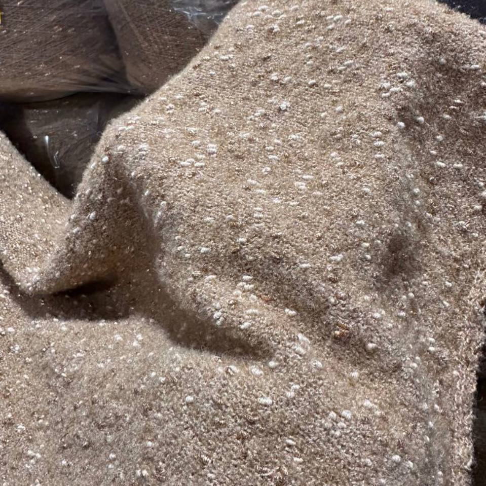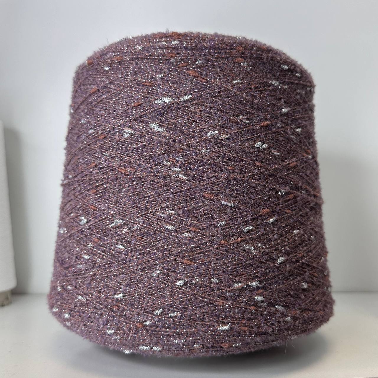 VOICE - Ri.Go; 45% альпака, 19% меринос, 17% п/а, 19% люрекс; 650м/100гр; Букле мелкое, col.16570, цвет: припыленный инжир с серебристыми шишками